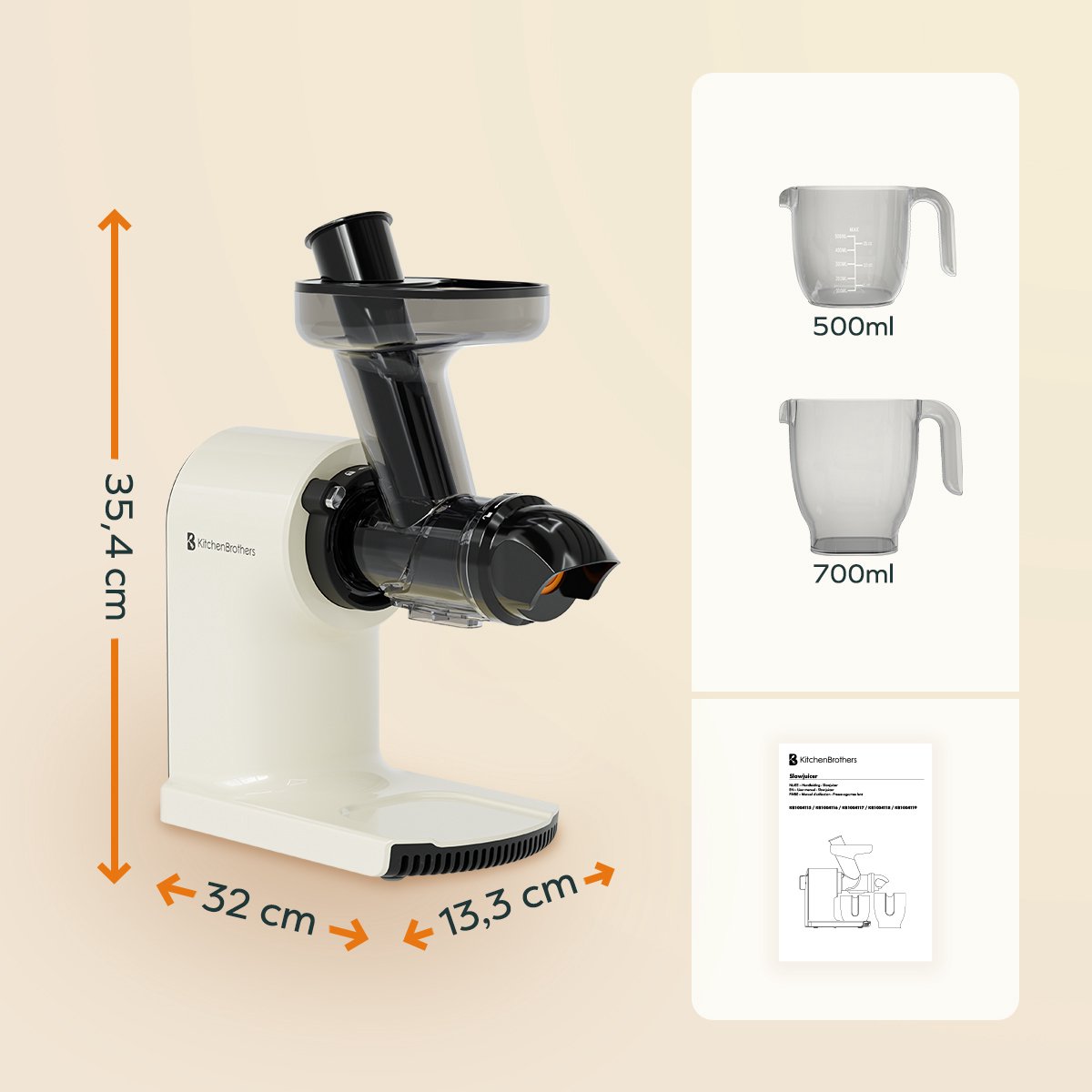 Specificaties: KitchenBrothers Slowjuicer – Compact test: meer sap, koud persen