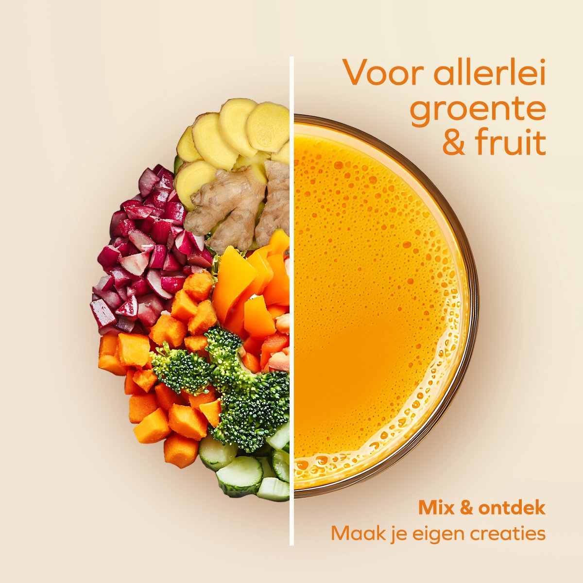 - Maak diverse sappen van fruit, groenten en bladgroenten, dankzij veelzijdige compatibiliteit.