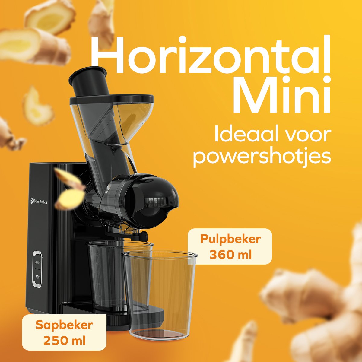 | Compact mini-formaat; ideaal voor kleine keukens en snel opbergen | Kleinere sapcontainer (250 ml) en pulpcontainer (360 ml) vragen sneller legen bij grote batches |