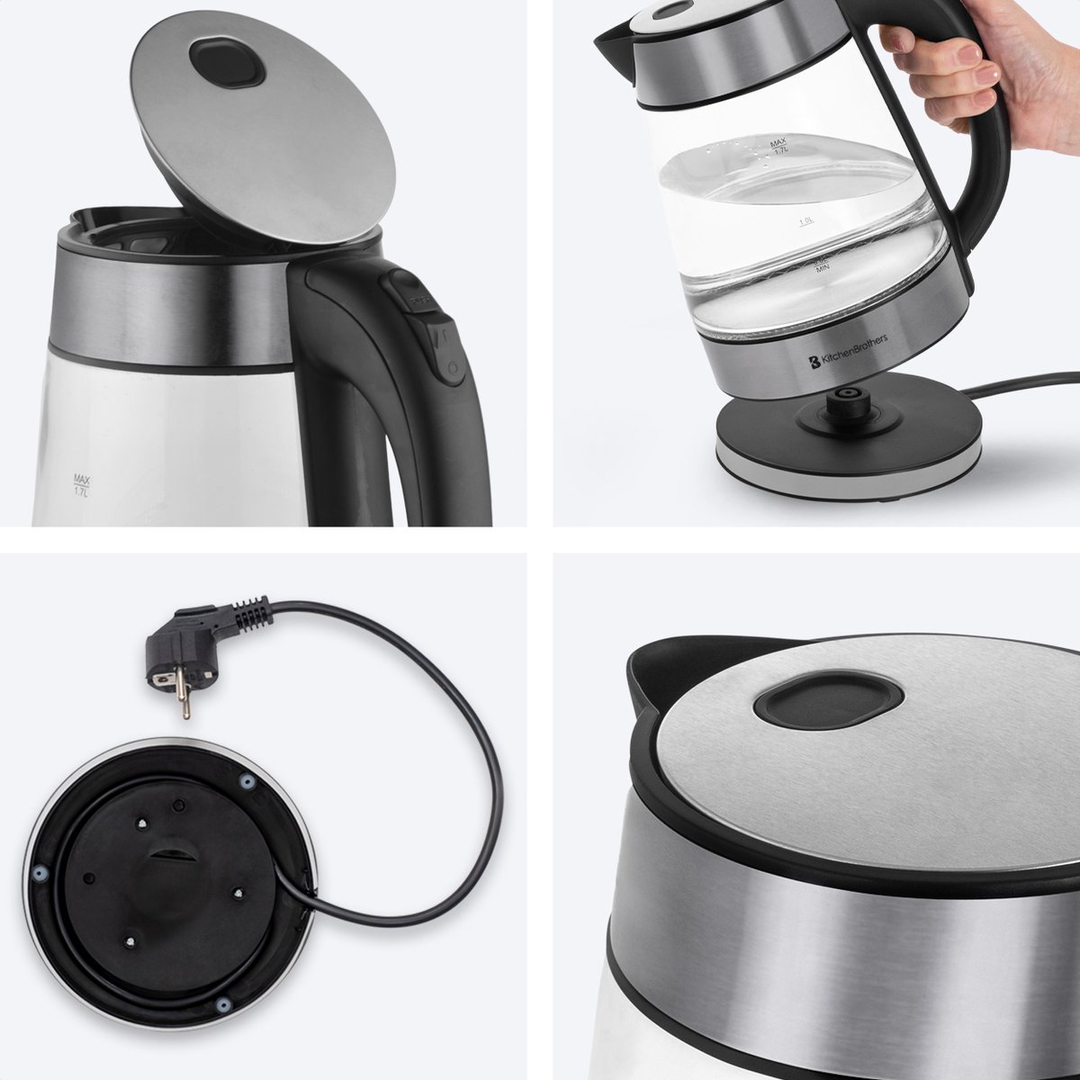 - KitchenBrothers glazen waterkoker (1,7 liter)