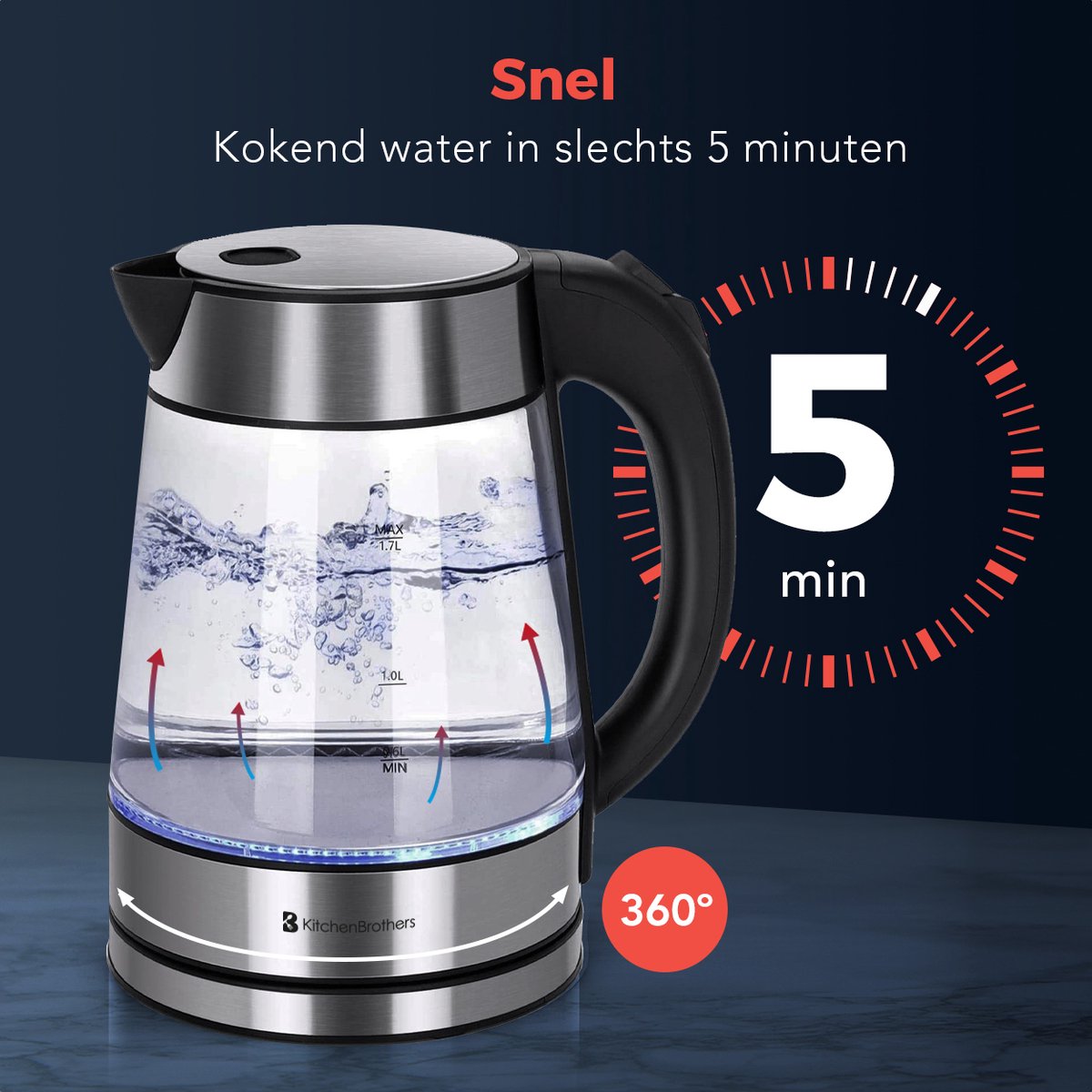 De KitchenBrothers glazen waterkoker versnelt je ochtendroutine en is ideaal voor Nederlandse huishoudens. Met 1,7 liter zet je in één keer thee of koffie voor het hele gezin.