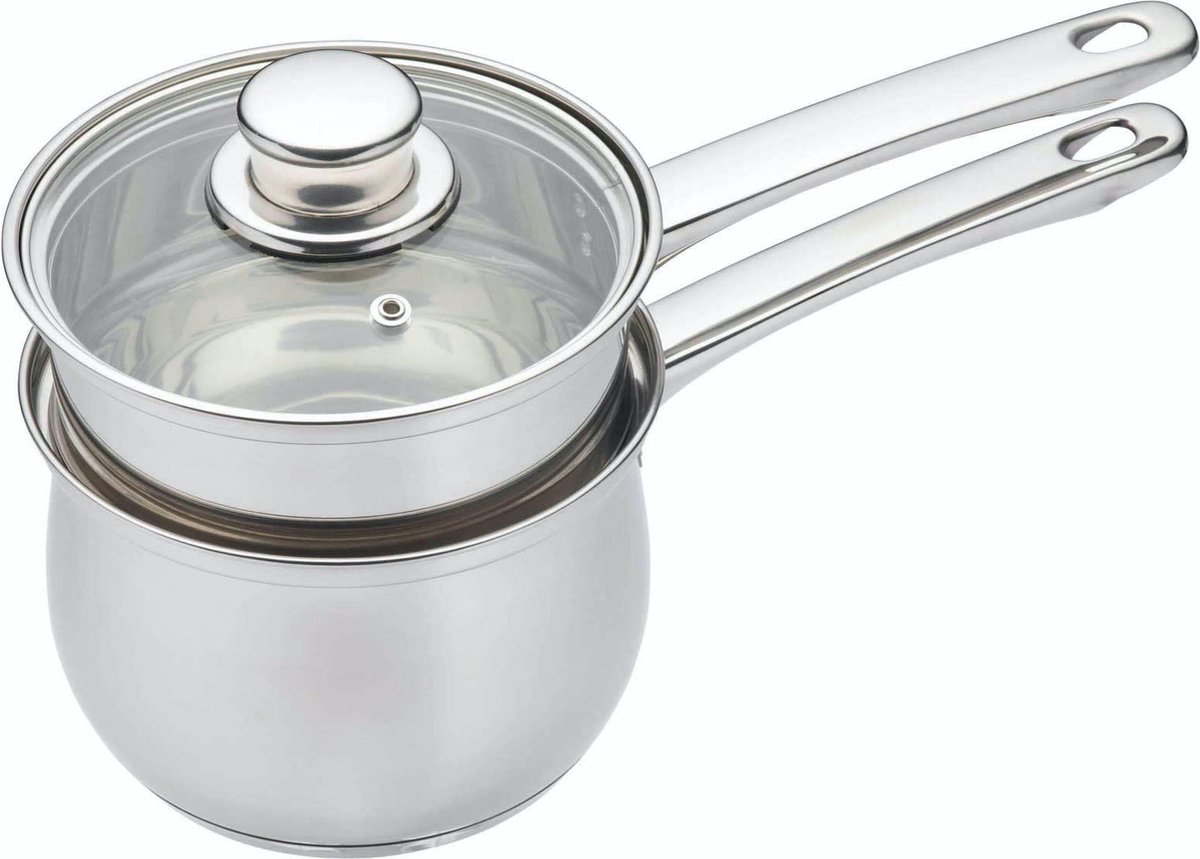 - Maak zijdezachte sauzen en puddingen — roestvrijstalen pan met inzetstuk.