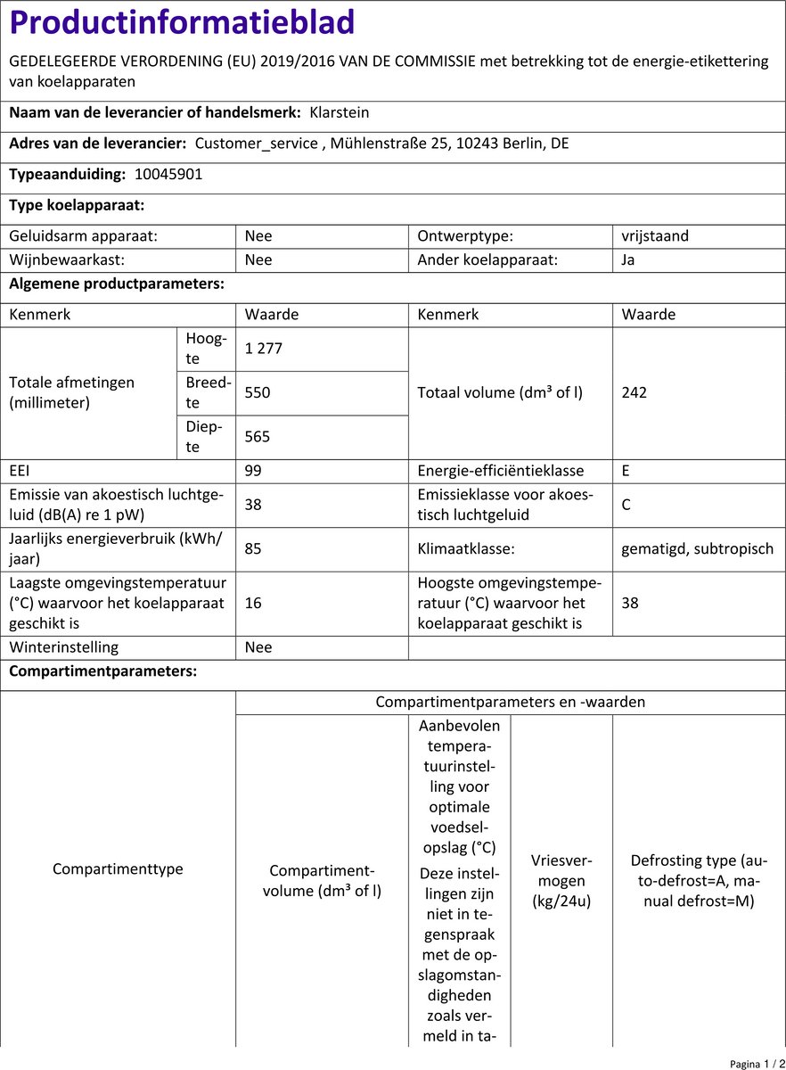 Digitaal display voor eenvoudige instelling (bron: listing, gecheckt 2025) Geen automatische ontdooiing vermeld