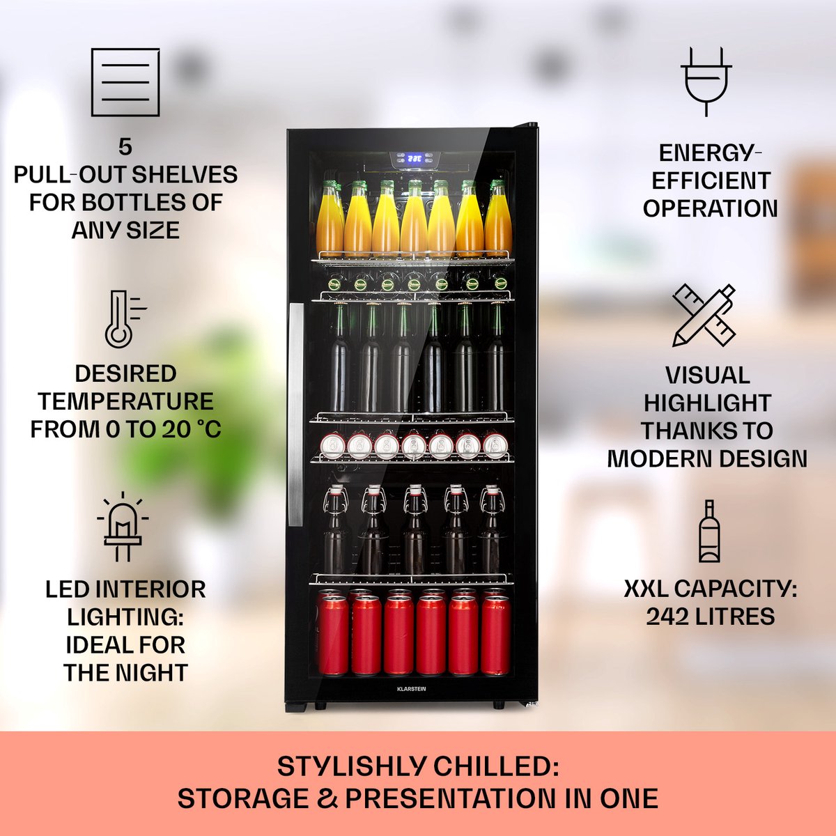 - Geniet van veel voorraad voor feestjes, dankzij 242 liter inhoud.