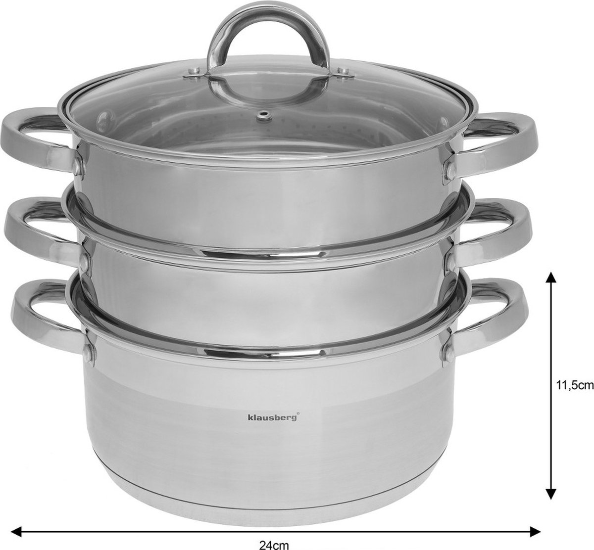 Specificaties: Klausberg 7145 – stoompan – 4 delig – 24cm – rvs – alle warmtebronnen review: gezond stomen op inductie