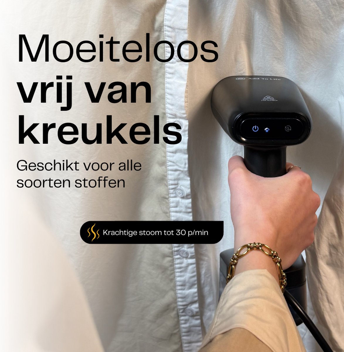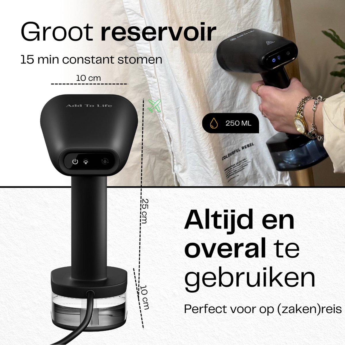 De Add To Life E01Pro kledingstomer helpt je in Nederland snel kreukvrij en fris voor de dag te komen, ideaal voor drukke ochtenden. Hij is binnen 25 seconden klaar voor gebruik, zodat je direct kunt stomen. Compact en handig voor thuis en onderweg.
