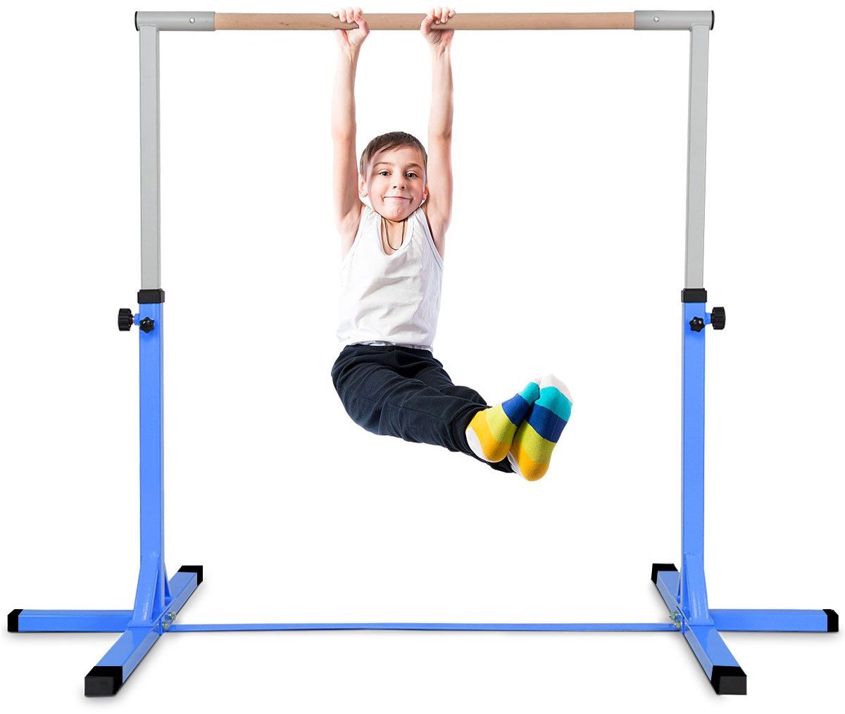 Dit verstelbare klimrek is een compact turnrek voor peuters en jonge kinderen dat bedoeld is om klimmen, duikelen en basisgymnastiek te oefenen. Het rek komt met 13 verstelbare hoogtes en een combinatie van staal en rubber voor stabiliteit en grip. Volgens de beschrijving stimuleert het spelen de motorische ontwikkeling en coördinatie van kinderen vanaf ongeveer 3 jaar.