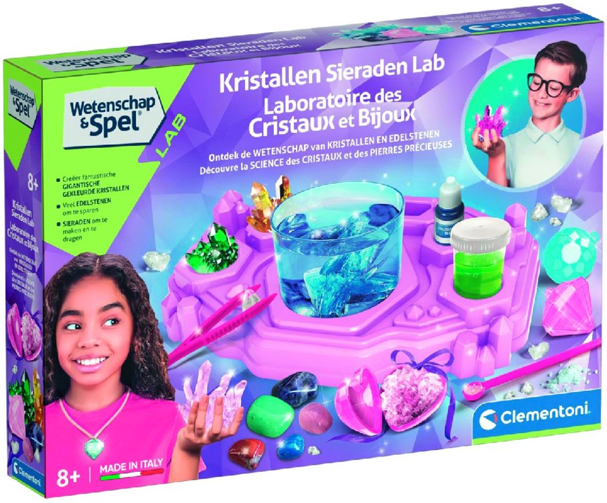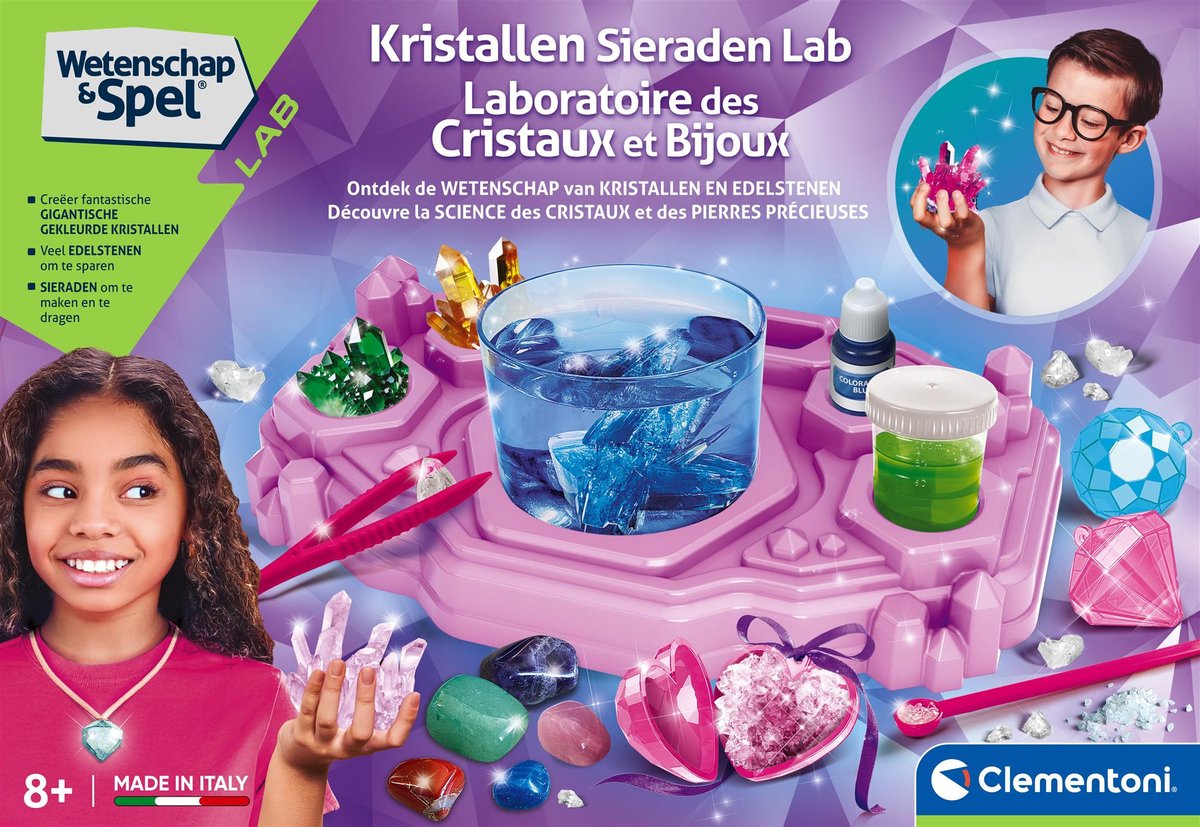 Een compleet wetenschapspakket om thuis de wereld van kristallen en edelstenen te verkennen. Op de handige werkplek maak je grote kristallen en glanzende sieraden en bestudeer je echte stenen. Ontwikkeld in Italië.
