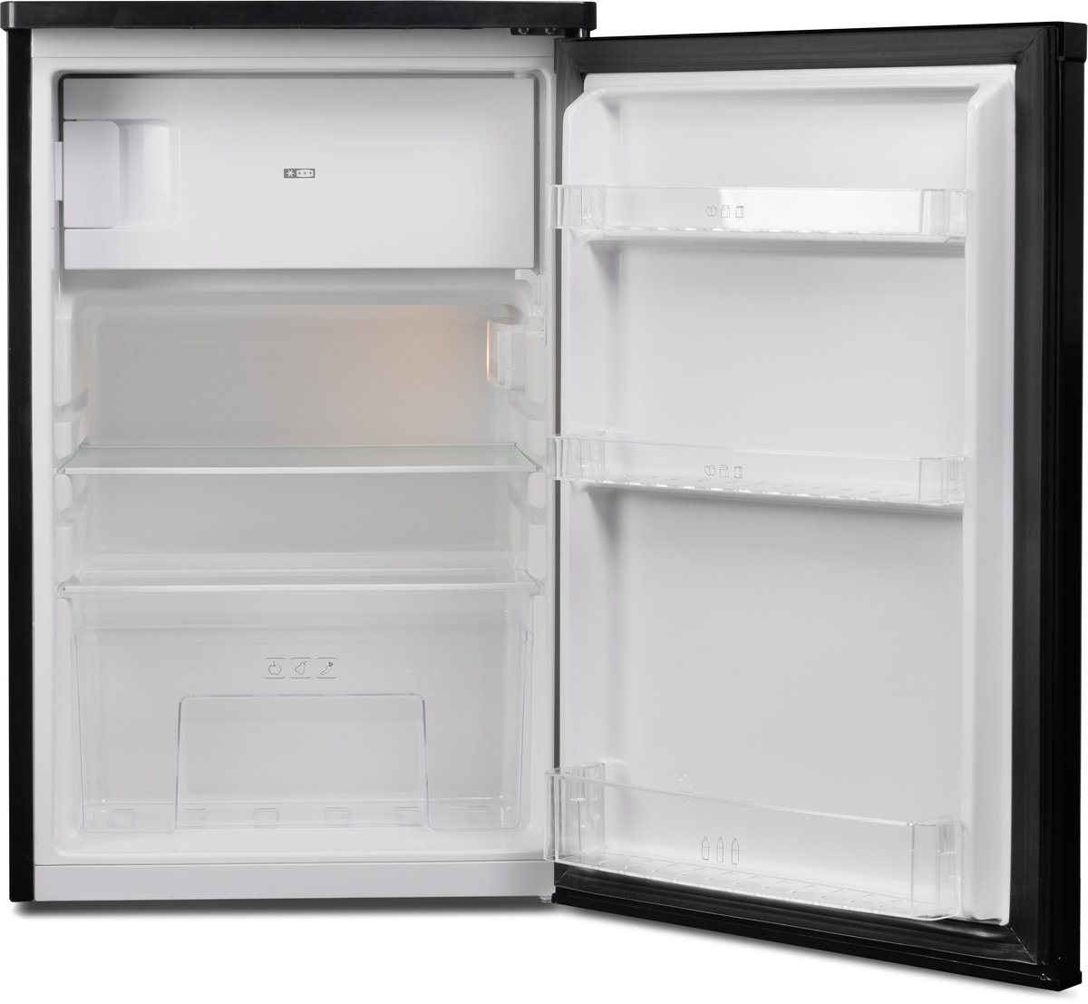 Het sterkste punt is de verhouding tussen buitenmaat en bruikbare binnenruimte. Met 109 liter totale inhoud heb je voldoende plek voor verse boodschappen voor één tot twee personen, of als aanvulling op een grotere koel-vriescombinatie. In een studentenkamer of tiny house is dit precies de maat die je nodig hebt: niet te groot, wel praktisch.