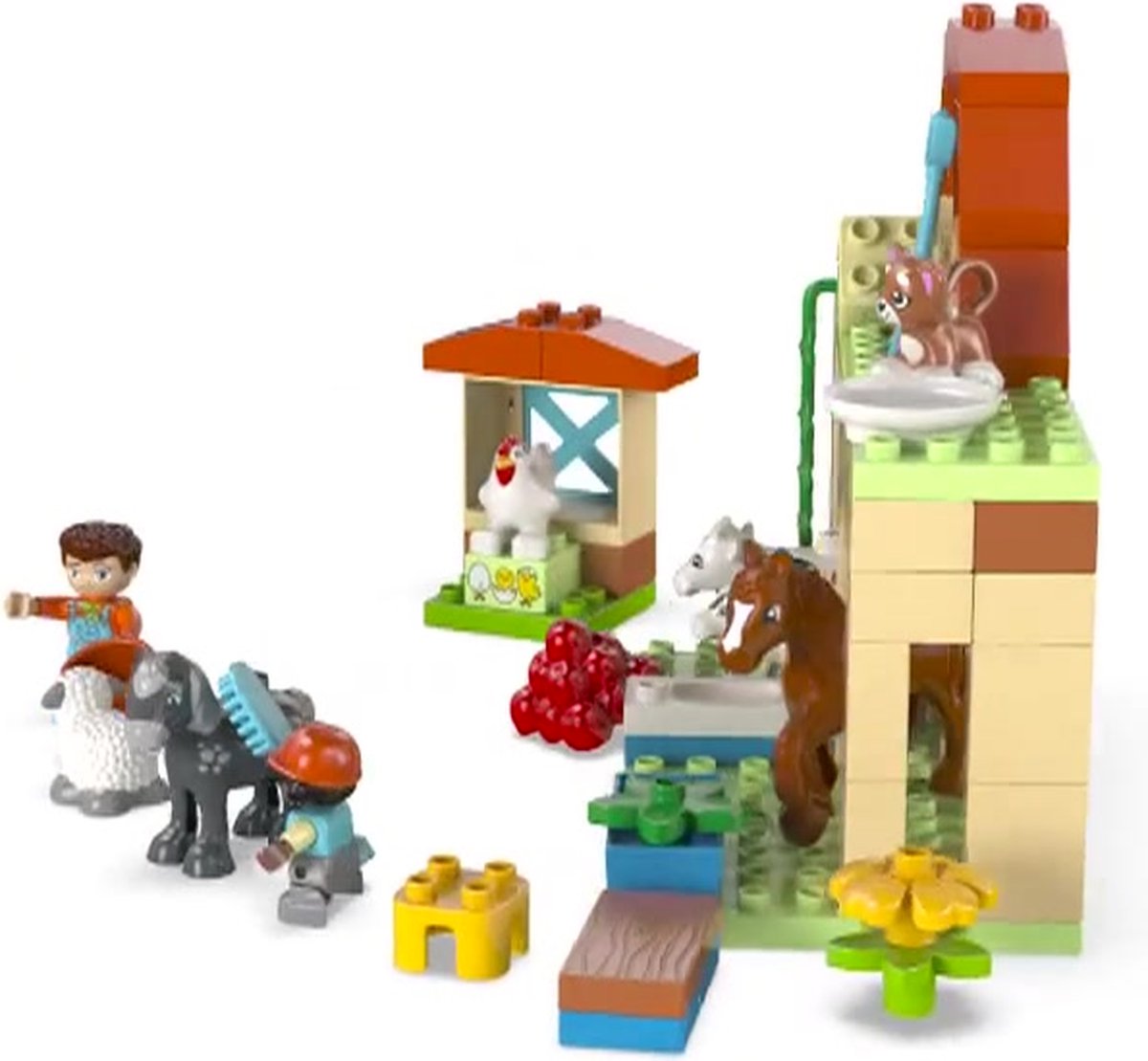 De LEGO DUPLO set Dieren verzorgen op de boerderij (set 10416) is een kleurrijke speelset voor peuters die houden van dieren en rollenspel. De set brengt een compacte boerderij met figuren en accessoires om samen te verzorgen, voeren en verzorgen van de dieren.