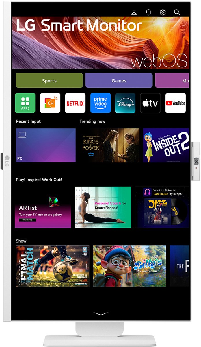 De Smart Monitor draait op WebOS 5.0, met een intuïtieve interface en directe toegang tot populaire streamingdiensten en een webbrowser. Zin in een serie of een snelle presentatie tonen? Je hebt niet per se een externe speler of pc nodig. Dat is prettig als je de monitor ook in je vrije tijd gebruikt of wanneer je even tussendoor iets wilt tonen in een vergaderruimte.