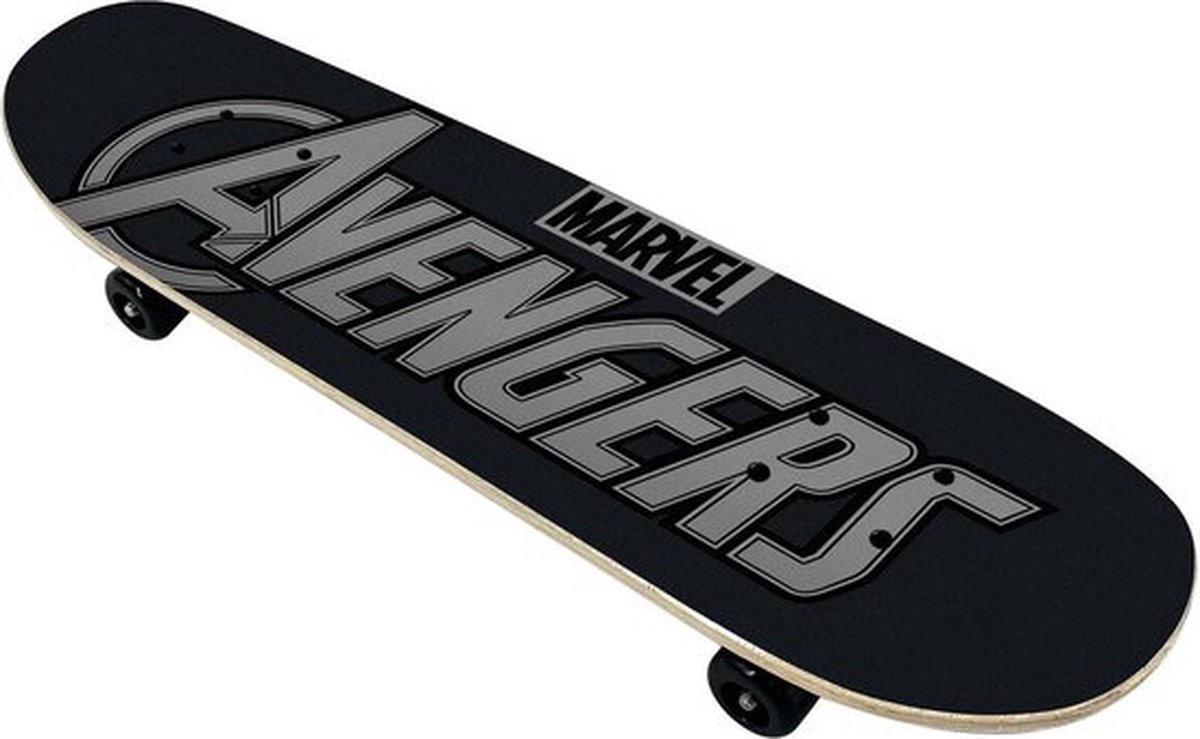 Het frame van het board is van (hard) kunststof. Kunststof frames zijn licht en bestand tegen vocht, maar ze bieden doorgaans minder stijfheid dan metalen onderdelen; dat maakt het board lichter, maar ook iets minder responsief in vergelijking met zwaardere, metalen trucks. Het totale ontwerp is kleurrijk en duidelijk op kinderen gericht: een multicolor afwerking met een Avengers-afbeelding aan de onderzijde die visueel aanspreekt.