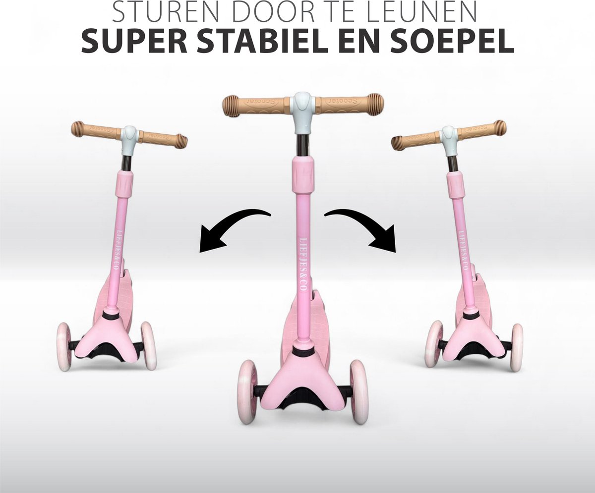 De Ziggy kinderstep van Liefjes & Co is een compacte driewieler-step bedoeld voor jonge kinderen van ongeveer 2 tot 6 jaar. Het model combineert stabiliteit, eenvoudig gebruik en een speels uiterlijk (elegant pastelroze) zodat kleintjes met zelfvertrouwen de eerste stapjes in zelfstandig voortbewegen kunnen zetten.