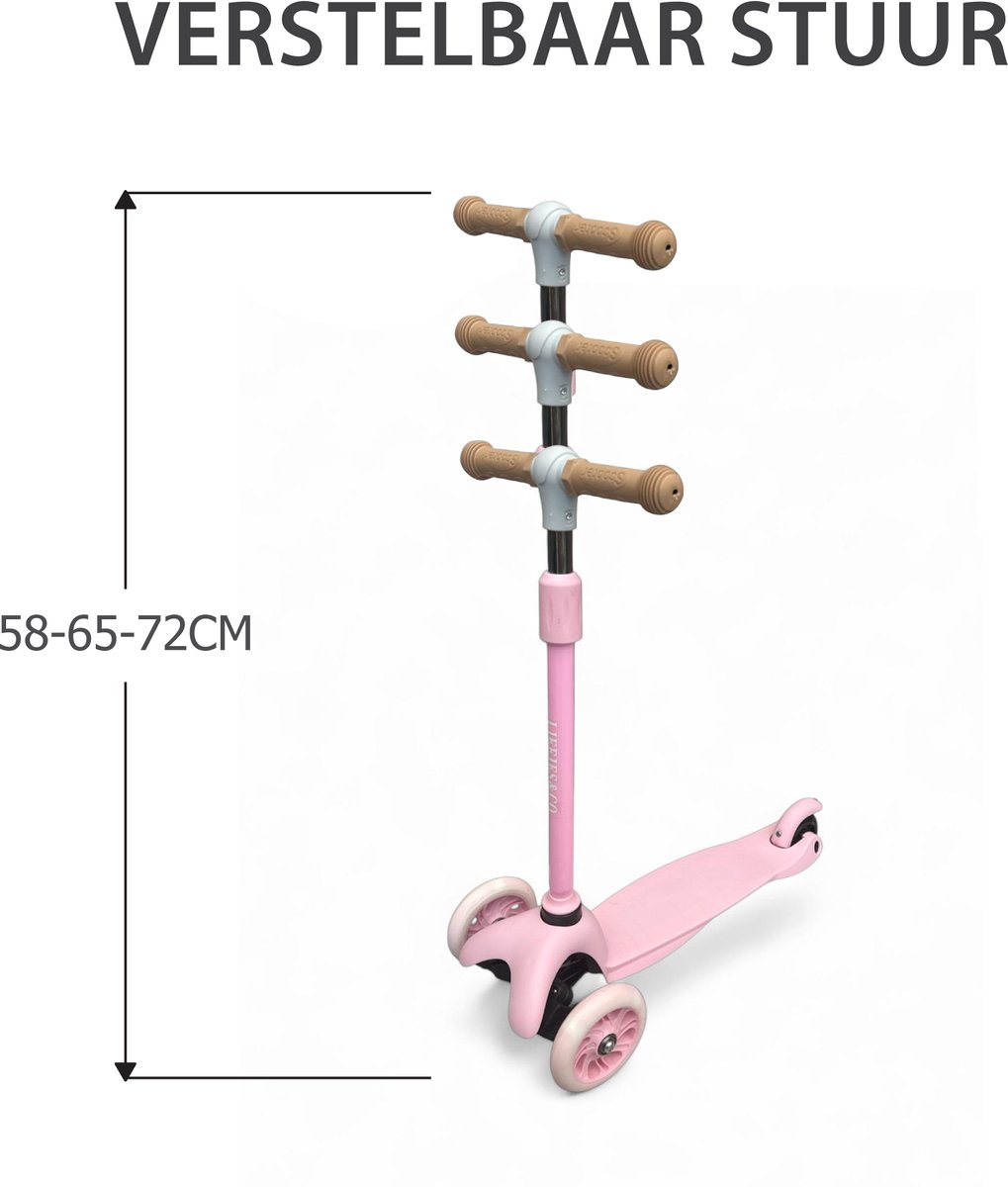 In hoogte verstelbaar stuur waardoor de step meegroeit met het kind | Beperkte kleurkeuze in listing: Elegant Pastelroze (Not specified of andere kleuren beschikbaar zijn) |