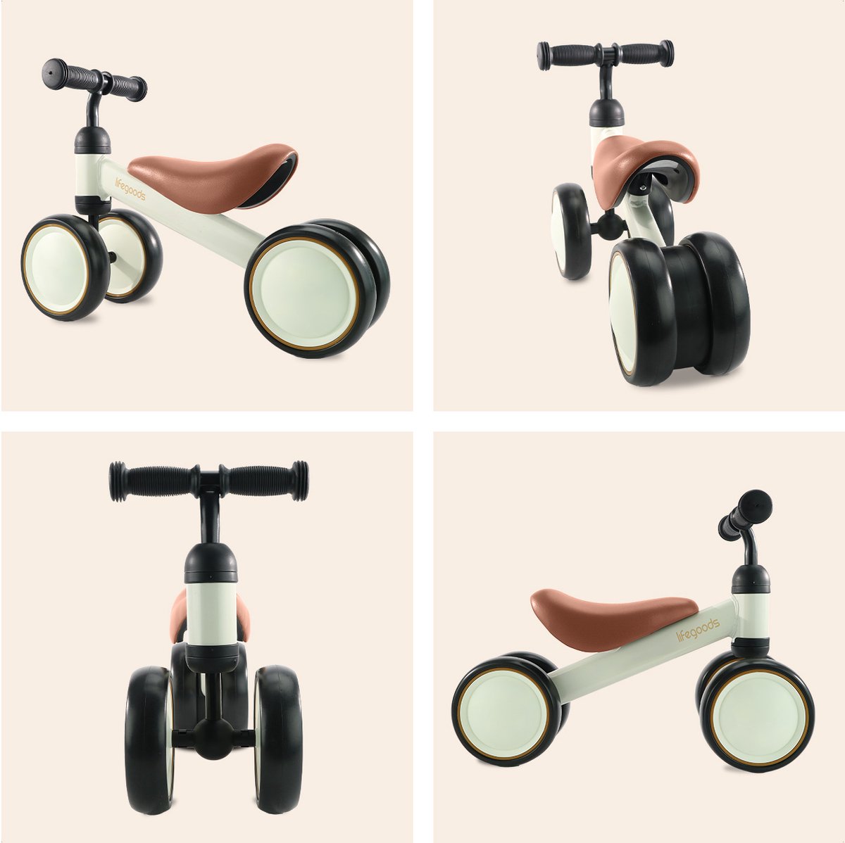 De LifeGoods loopfiets is een eenvoudige, veilige eerste fiets voor jonge kinderen. Het ontwerp richt zich op stabiliteit en gebruiksgemak: een laag zadel, een stevig frame en rubberen onderdelen om grip en comfort te bieden. Deze loopfiets is bedoeld voor ouders die hun peuter vroeg willen laten oefenen met balans en coördinatie zonder het gedoe van trappers of stabilisatoren.