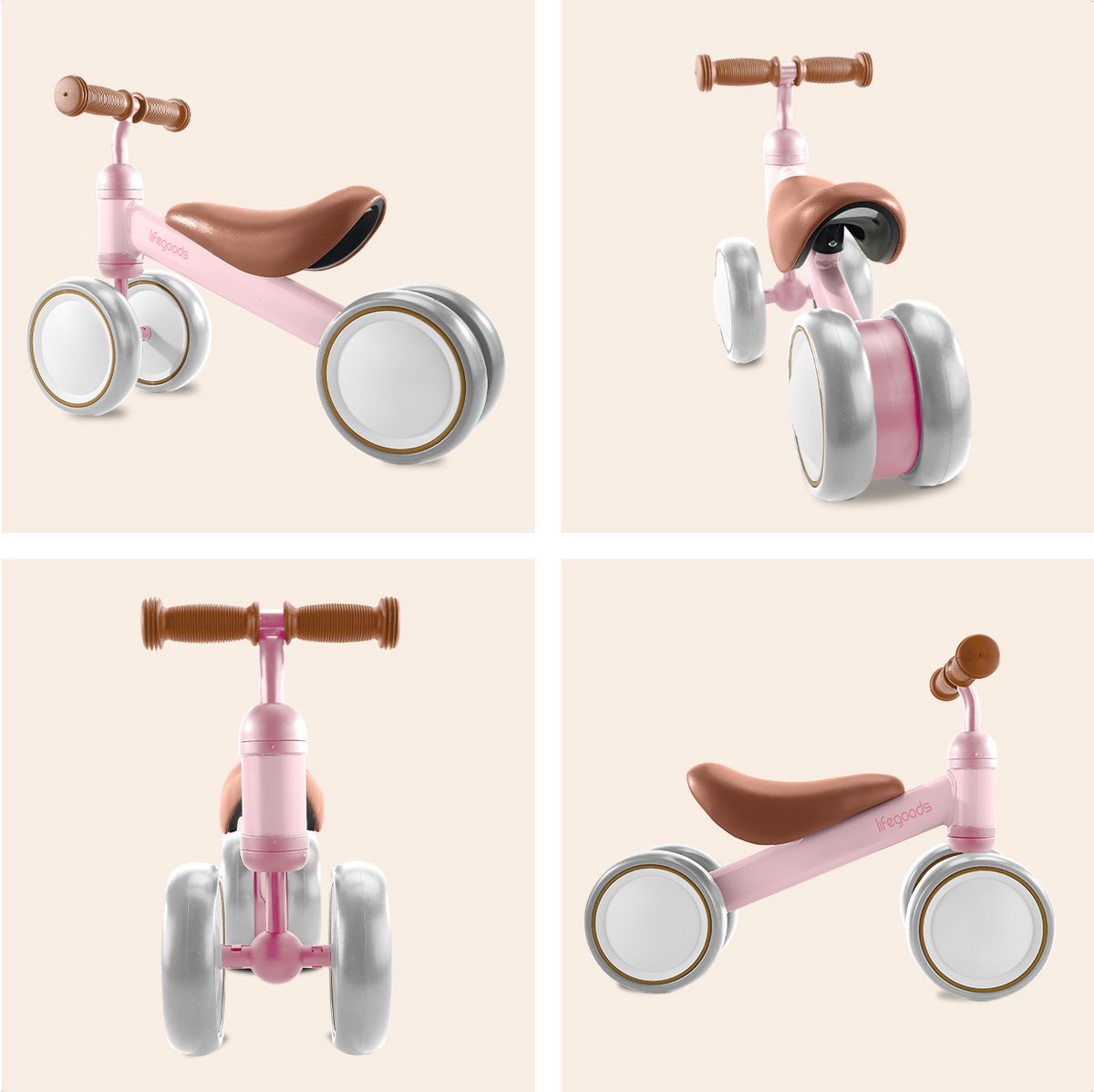 De loopfiets van LifeGoods is een eenvoudig, kindvriendelijk eerste vervoermiddel voor peuters en kleuters. Het doel van dit product is kinderen vertrouwd te maken met balans, coördinatie en het idee van zelfstandig rijden zonder pedalen of complexe bedieningselementen.