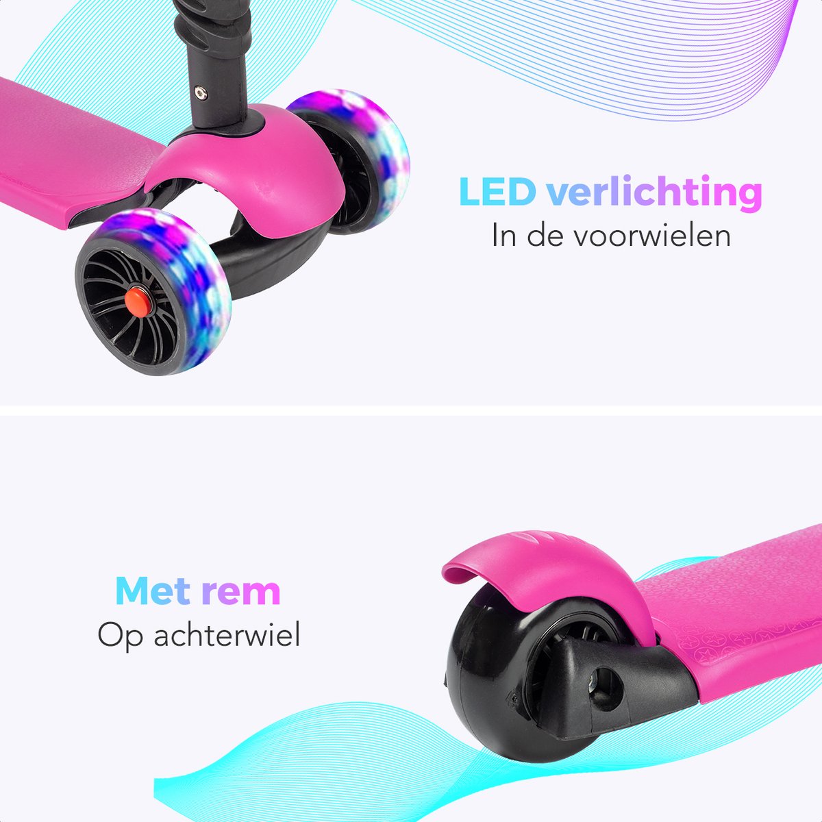 Fijn dat deze step niet aan één leeftijd gebonden is — stuur en zadel zijn verstelbaar, dus hij groeit met je kind mee. Mijn driejarige is er erg blij mee. Goede prijs-kwaliteitverhouding en een extra mooi uiterlijk door de lichtgevende wielen.