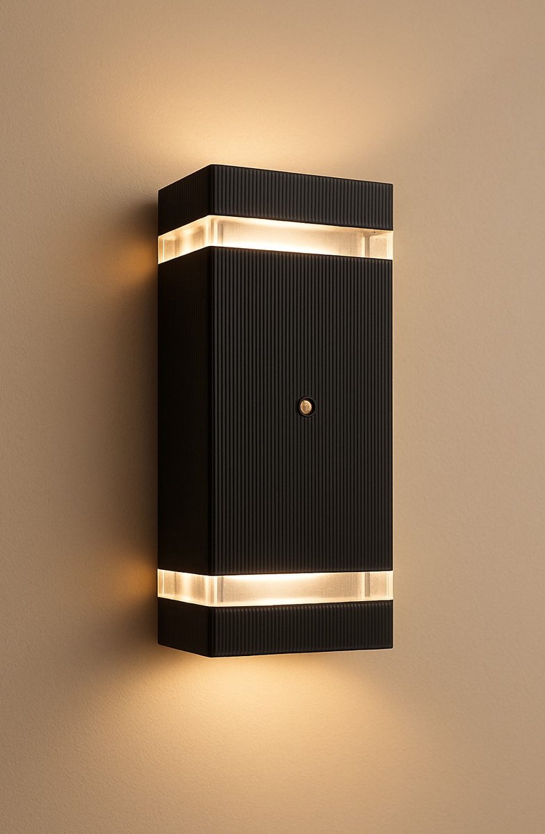 De LIMITHES Lisa is een stijlvolle buitenwandlamp met een slimme dag- ennachtsensor (schemerschakelaar) en een up-&-down lichtpatroon dat chique lichtaccenten op de muur creëert. Deze lamp is ontworpen voor wie buitenverlichting zoekt die zowel functioneel als decoratief is: ideaal bij de voordeur, op het terras of langs een oprit. Kort gezegd: een weerbestendige, hardwired wandverlichting met een verzorgd uiterlijk in aluminium en helder glas.