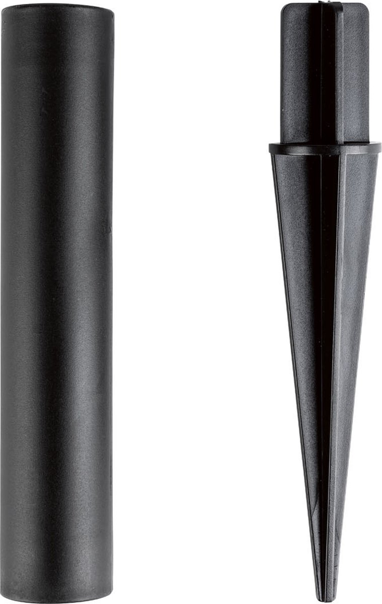 - Met de grondpen prik je de projector in de aarde; met de stavoet plaats je hem op een vlakke ondergrond.