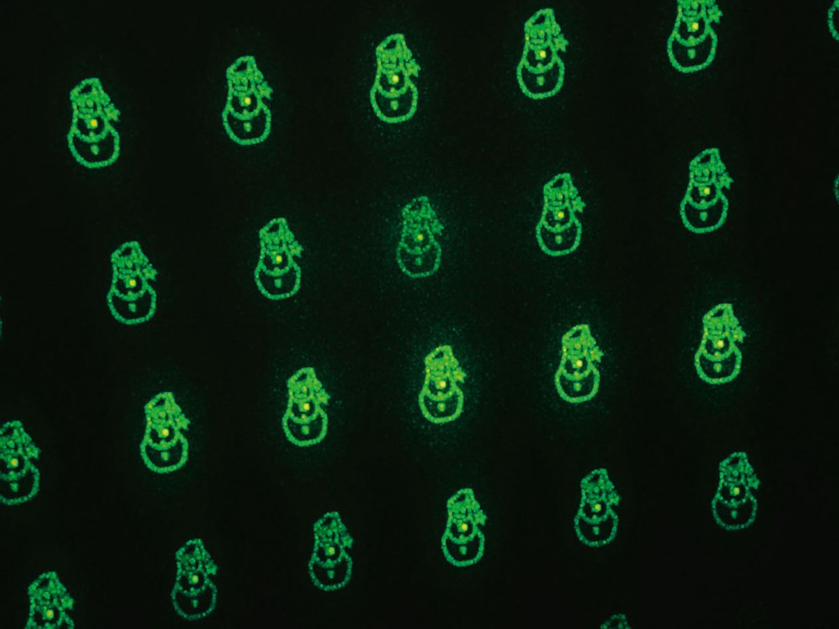 - Je kunt instellen op rode of groene motieven en kiezen uit patronen zoals puntpatroon, sneeuwvlokken, sterren, kerstmannetjes, sneeuwpoppen en dennenbomen.