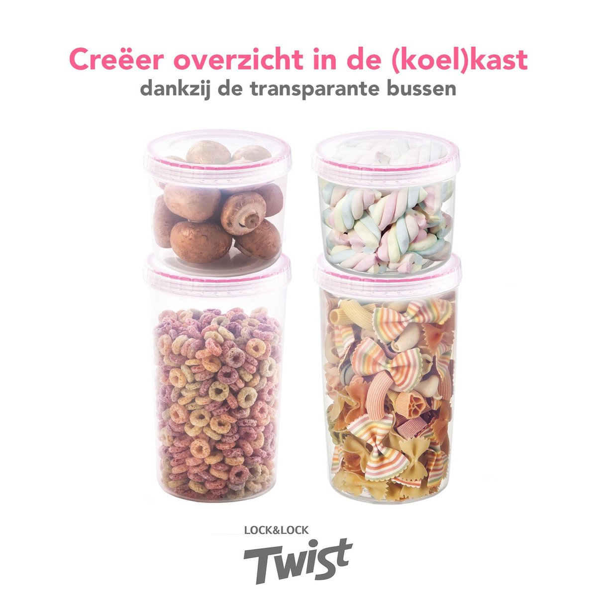 Binnen deze recensie hebben we de term LocknLock Twist voorraadbussen bewust meerdere keren gebruikt omdat het precies de kern van het product vangt: het is de Twist-lijn van LocknLock, en je koopt bussen om voorraad overzichtelijk, vers en veilig op te bergen. Of je ze nu inzet als handige vershouddoos, een strakke oplossing voor je ontbijtstation of als praktische beschuitbus: de set past zich zonder moeite aan jouw keukenroutine aan.