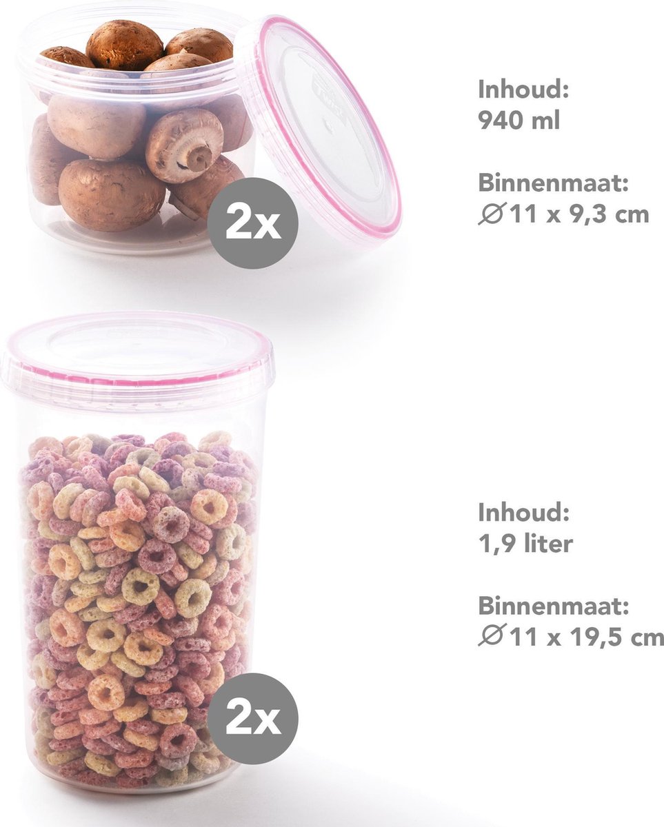- Je een veelzijdige set wilt die zowel droge waren als restjes aan kan en die volgens de fabrikant geschikt is voor magnetron, vriezer en vaatwasser.