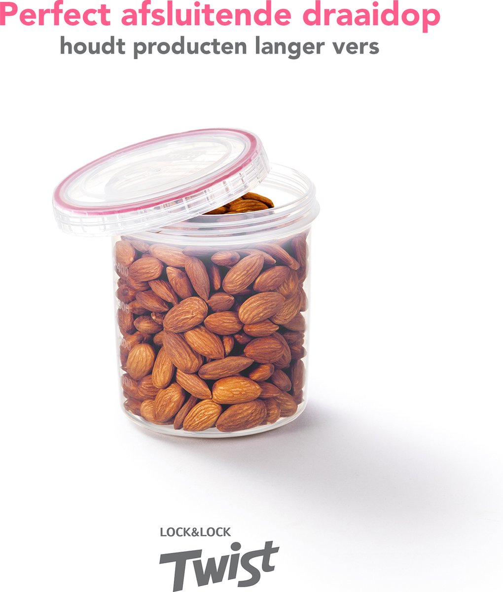 Breng orde in Nederlandse keukens met de LocknLock Twist voorraadbus. De topreden: alles blijft langer vers en lekvrij, zodat je minder verspilt. Met 560 ml inhoud is hij ideaal voor noten, specerijen en kleine porties.