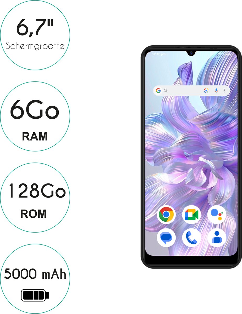 De SMART PRO smartphone is groot zonder overdreven fors te worden. Met afmetingen van 170 x 78,3 x 8,9 mm en een gewicht van 200 g voelt het toestel solide aan in de hand, maar blijft het nog steeds goed hanteerbaar voor langere sessies scrollen, lezen of video’s kijken. Het 6,7‑inch HD+ IPS‑scherm beslaat het grootste deel van de voorkant en geeft je veel schermruimte voor multitasken, productiviteit en entertainment.