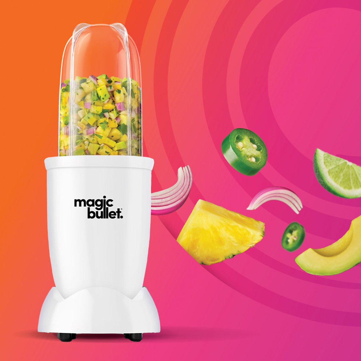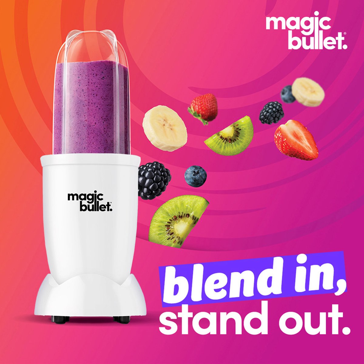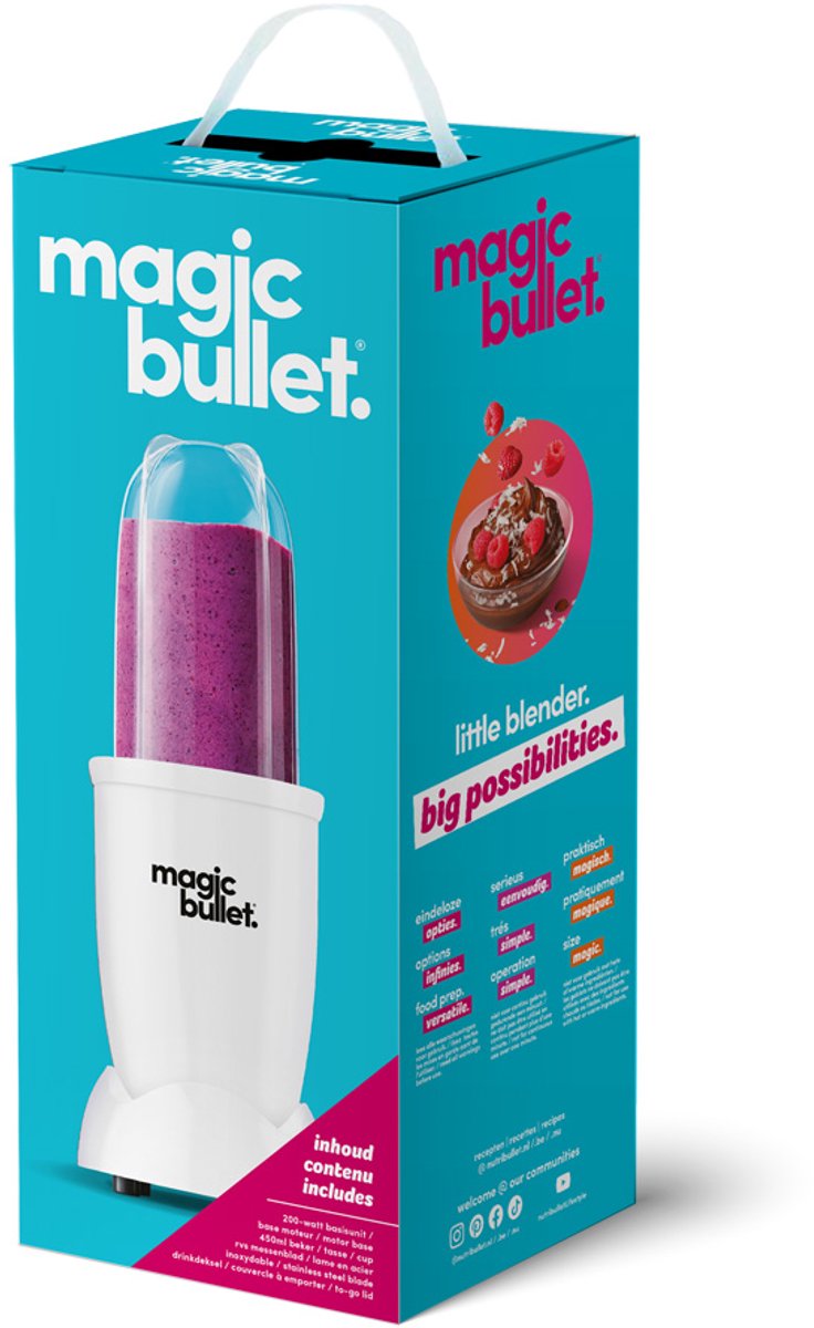 De Magic Bullet Color is een compacte, veelzijdige keukenhulp die met één druk op de knop smoothies, shakes, dips, sauzen en babyhapjes maakt. Dankzij het kleine formaat past hij in elke keuken en staat hij in seconden paraat voor je dagelijkse mixklus.