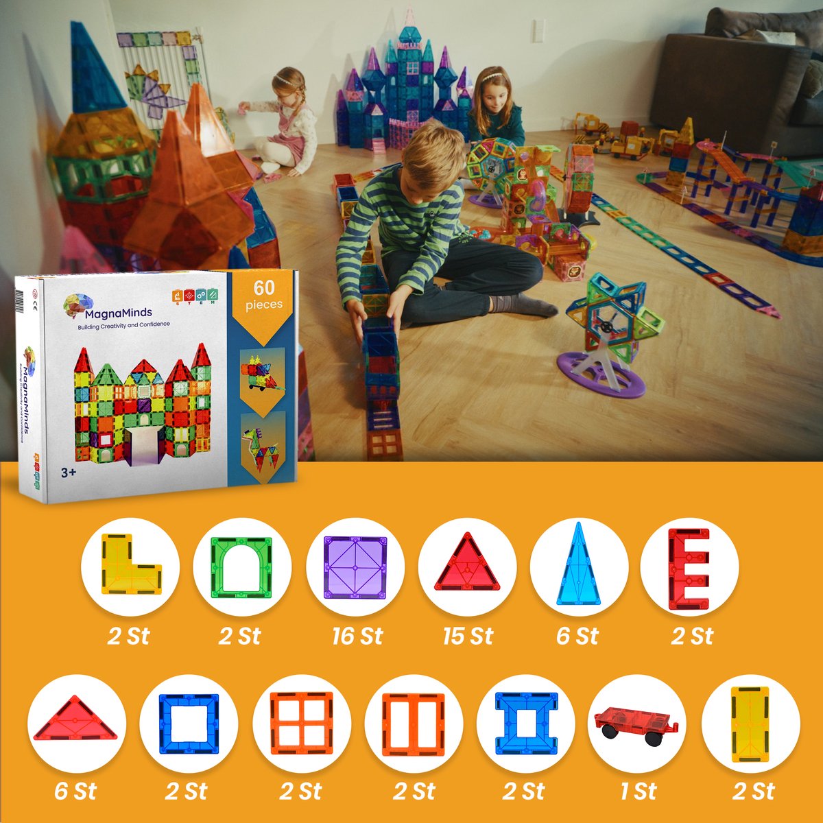 - Volledige set van 60 stuks (Magnetic Tiles)