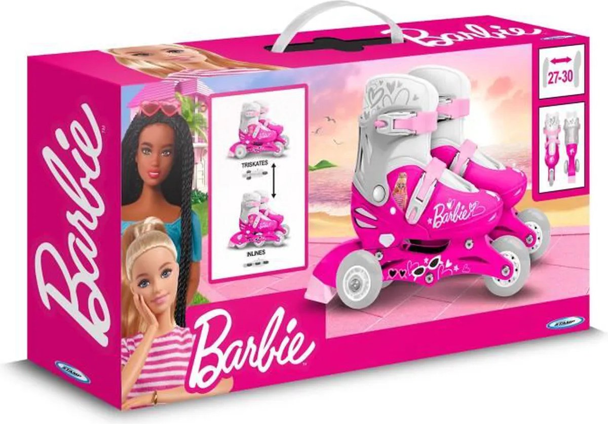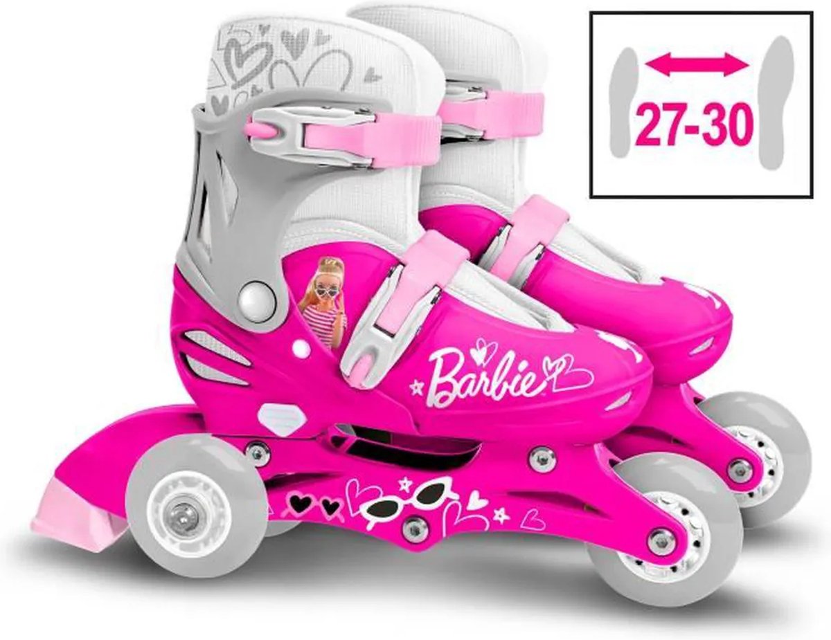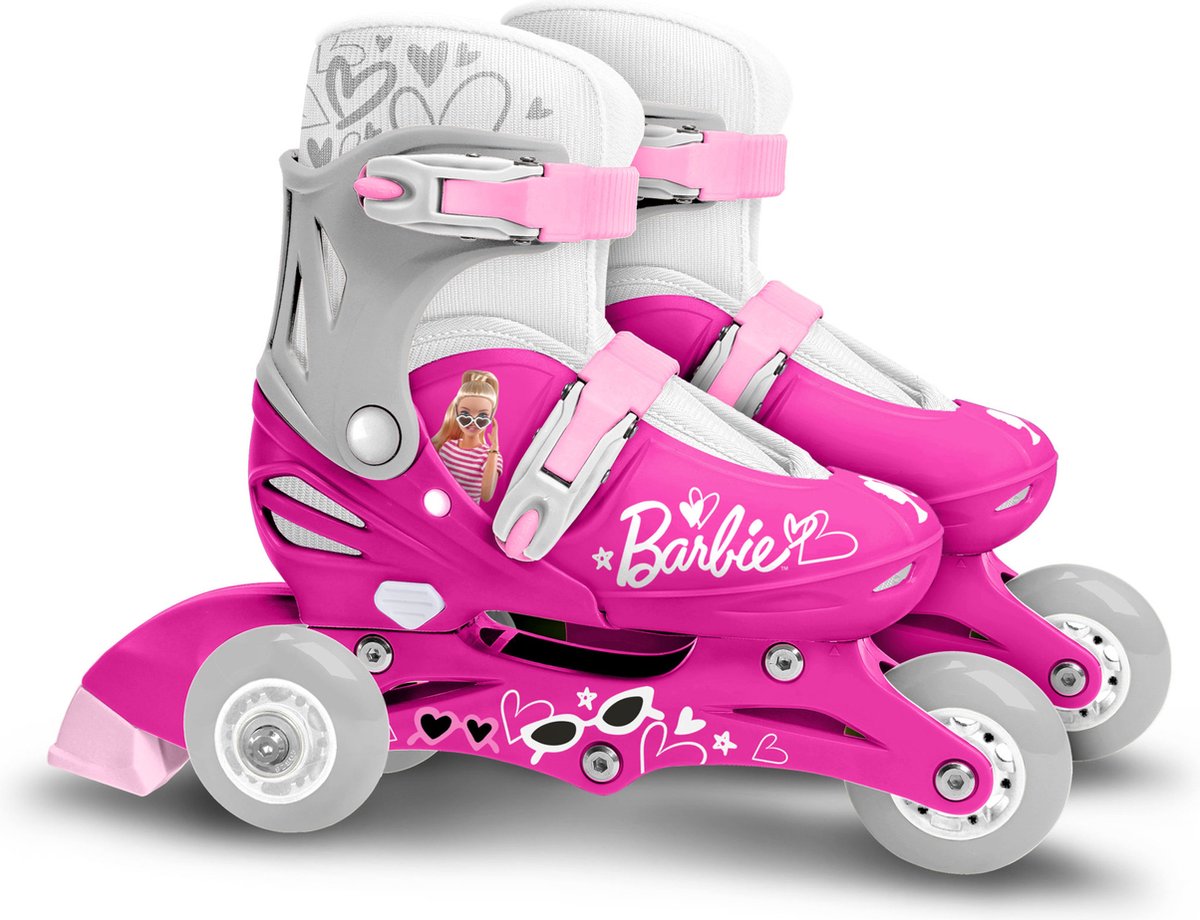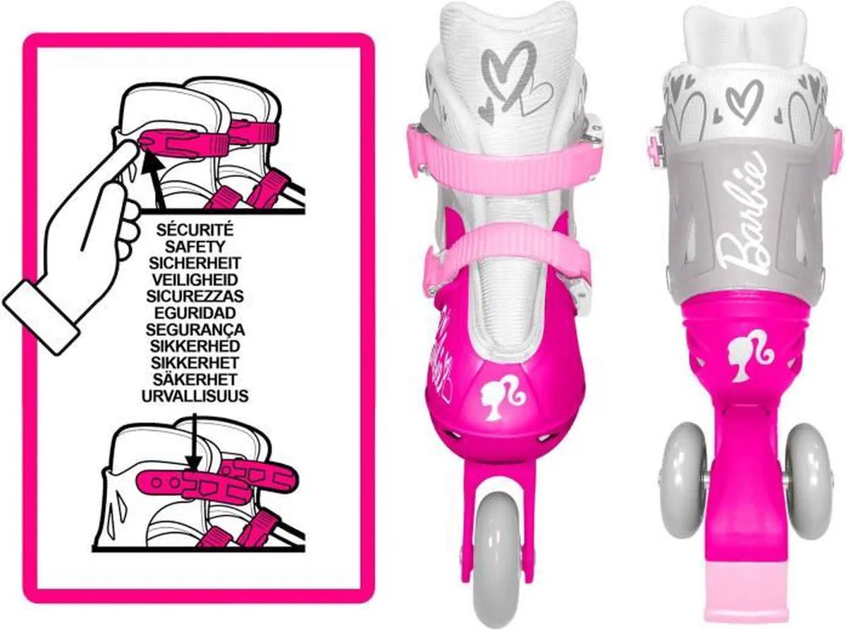 De Barbie 2-in-1 skates van Mattel zijn verstelbare skates voor jonge meisjes die net beginnen met skaten. Ze zijn ontworpen als semi-hardboot en kunnen in twee configuraties gebruikt worden: inline voor snelheid en tri voor extra stabiliteit. Door het verstelbare model (maat 27-30) groeien ze met de voet mee, wat ze aantrekkelijk maakt voor ouders die duurzaamheid en waar voor hun geld willen.