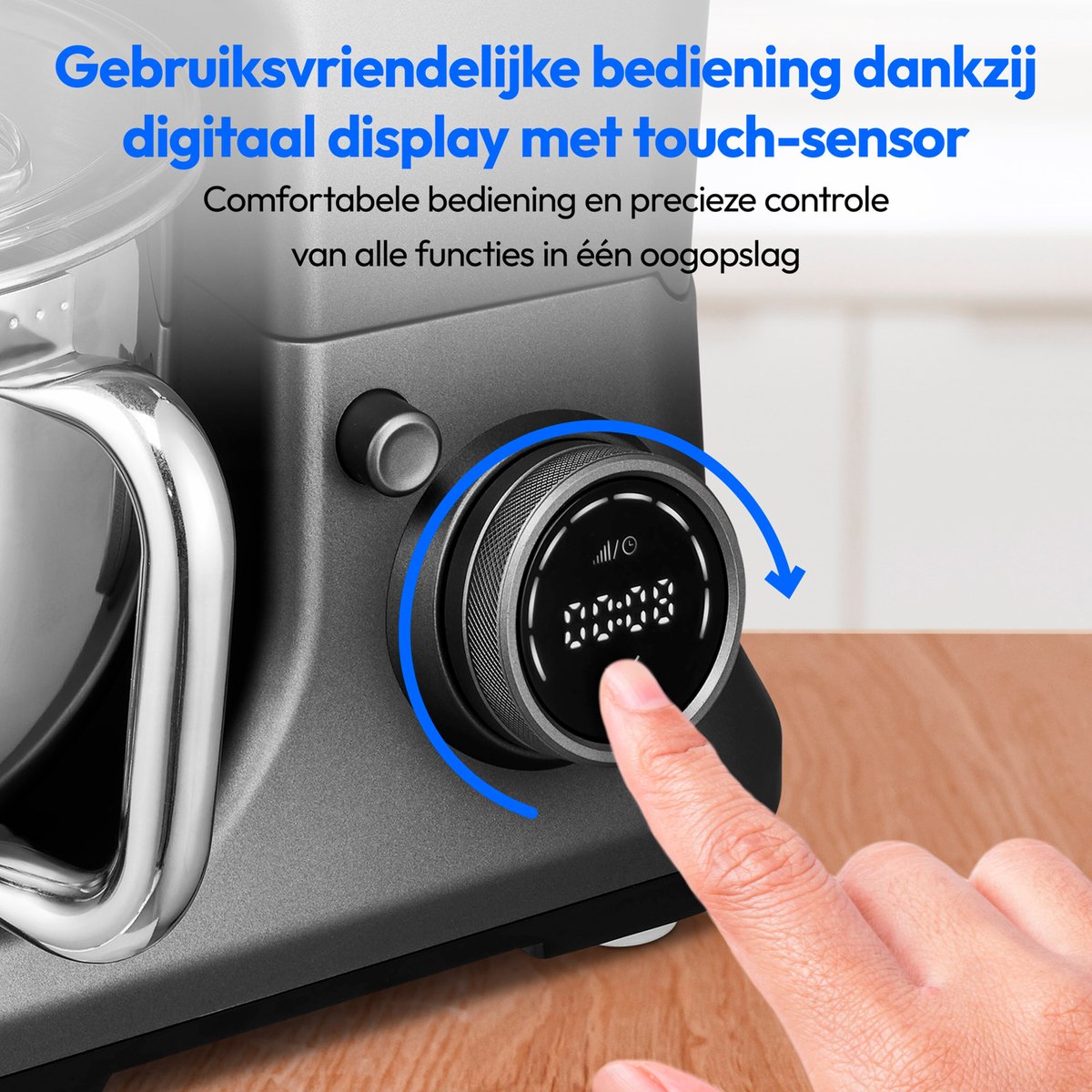 Voor wie graag brood, cake of pizzabodems maakt, maar ook zelf sauzen, burgers of zelfs ijs wil bereiden, biedt deze machine opvallend veel mogelijkheden in één apparaat. Het gebruik is eenvoudig dankzij een combinatie van een stevige metalen draaiknop en aanraakgevoelige sensoren. Met acht snelheden en een extra pulsstand kun je precies doseren. De roestvrijstalen kom van vijf liter geeft je de ruimte om grotere hoeveelheden te bereiden (bron: productvermelding, gecontroleerd 2025).