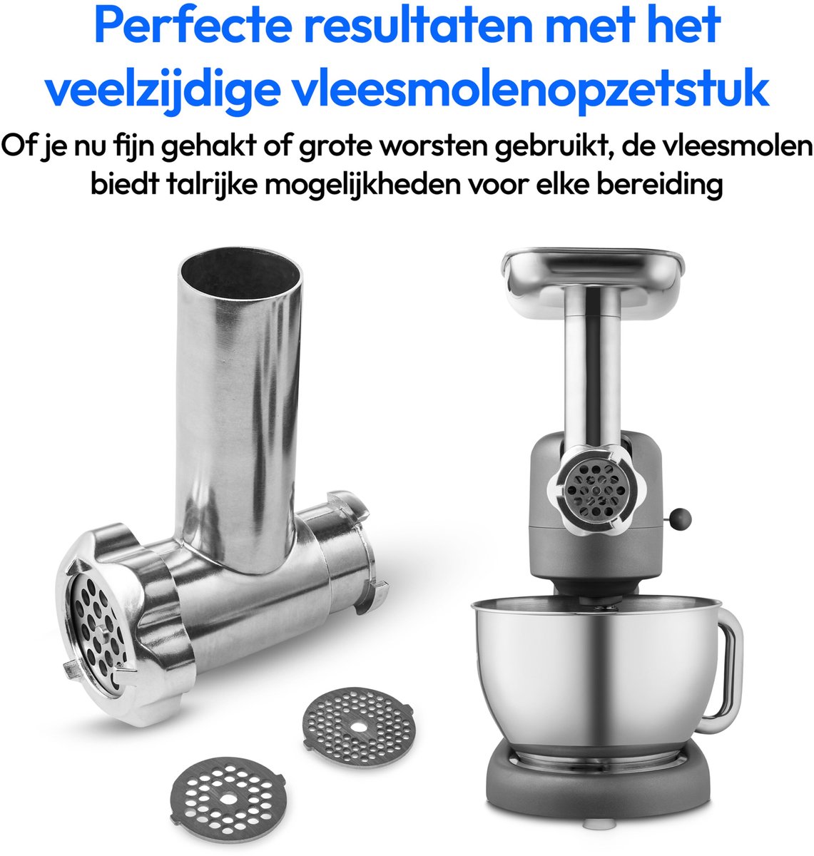 • Vleesmolen: draai runder-, kip- of varkensvlees zelf, zodat je de structuur en vetverhouding kunt kiezen. Denk aan burgers, gehaktballen of lasagnevulling.