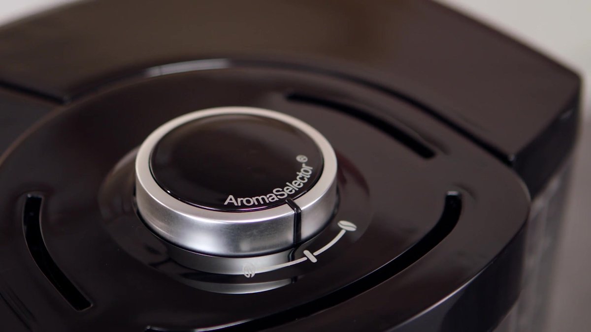 Met de gepatenteerde AromaSelector® kun je de sterkte van de koffie aanpassen zonder water- of koffiehoeveelheid te veranderen. Van mild tot sterk: één handeling volstaat om het aroma naar voorkeur te zetten. Dit is handig wanneer smaken gedurende de dag verschillen (bijvoorbeeld sterker in de ochtend, milder in de namiddag) zonder telkens anders te hoeven afmeten.
