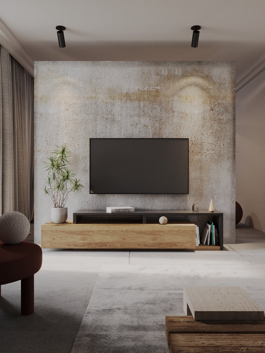 Het industriële uiterlijk maakt het tv-meubel tot een statement in een moderne woonkamer. Strakke lijnen, eventueel zichtbare metalen accenten en een donkere, robuuste afwerking combineren met verschillende interieurstijlen — van Scandinavisch met contrast tot volledig industrieel.
