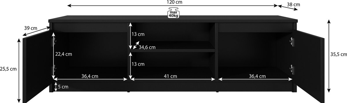 4 recensies voor Meubella – TV-Meubel Diaz – Mat Zwart – 120 cm review compact