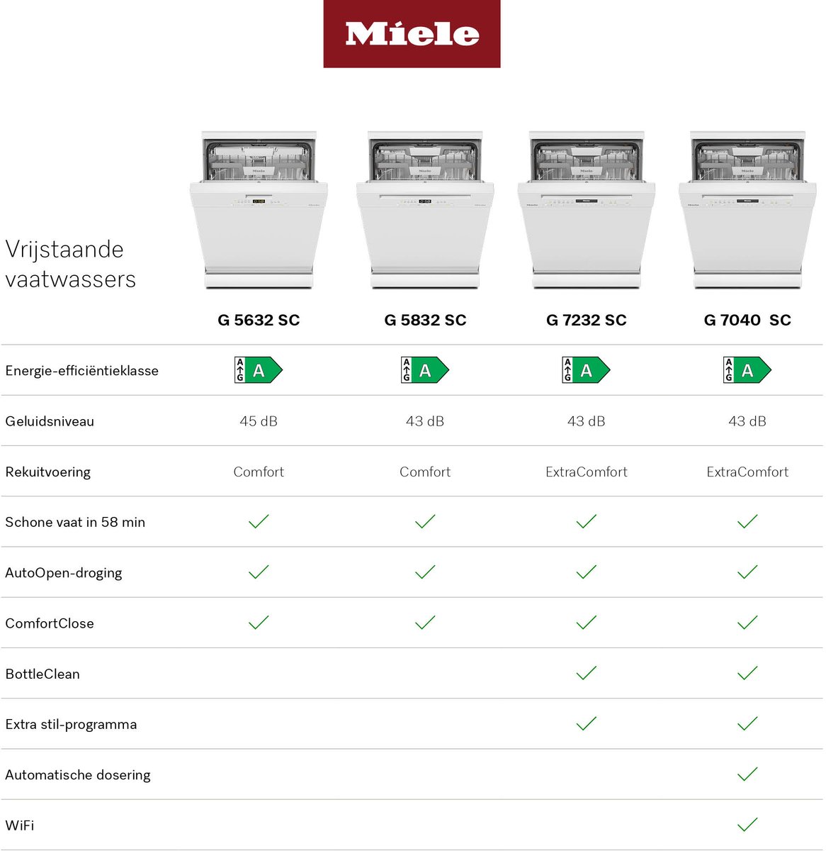 Overzicht:De Miele G 7040 SC is een vrijstaande vaatwasser die gebruiksgemak en efficiëntie combineert voor Nederlandse huishoudens. De grootste plus: automatische dosering zodat u nooit meer handmatig tabletten hoeft te doseren; biedt plaats voor maximaal 14 standaardcouverts.