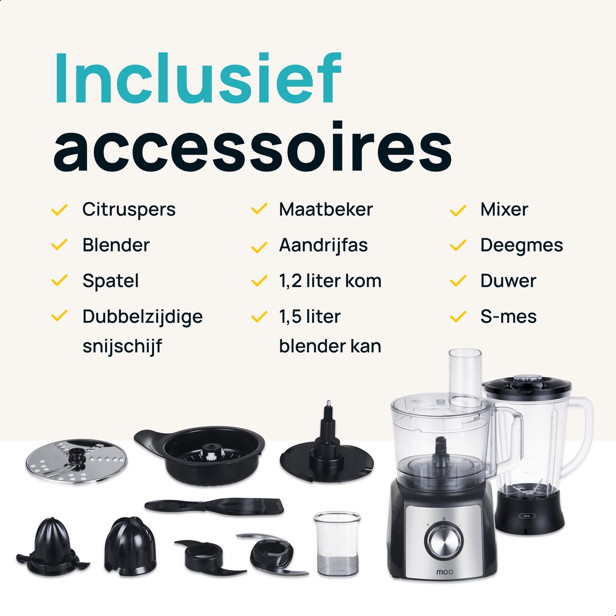 MOA – Foodprocessor – Keukenmachine en blender – 1,5 liter – 1200 Watt – Citruspers – Incl. accessoires – FP511 review: snel hakken, scherpe prijs Prijzen