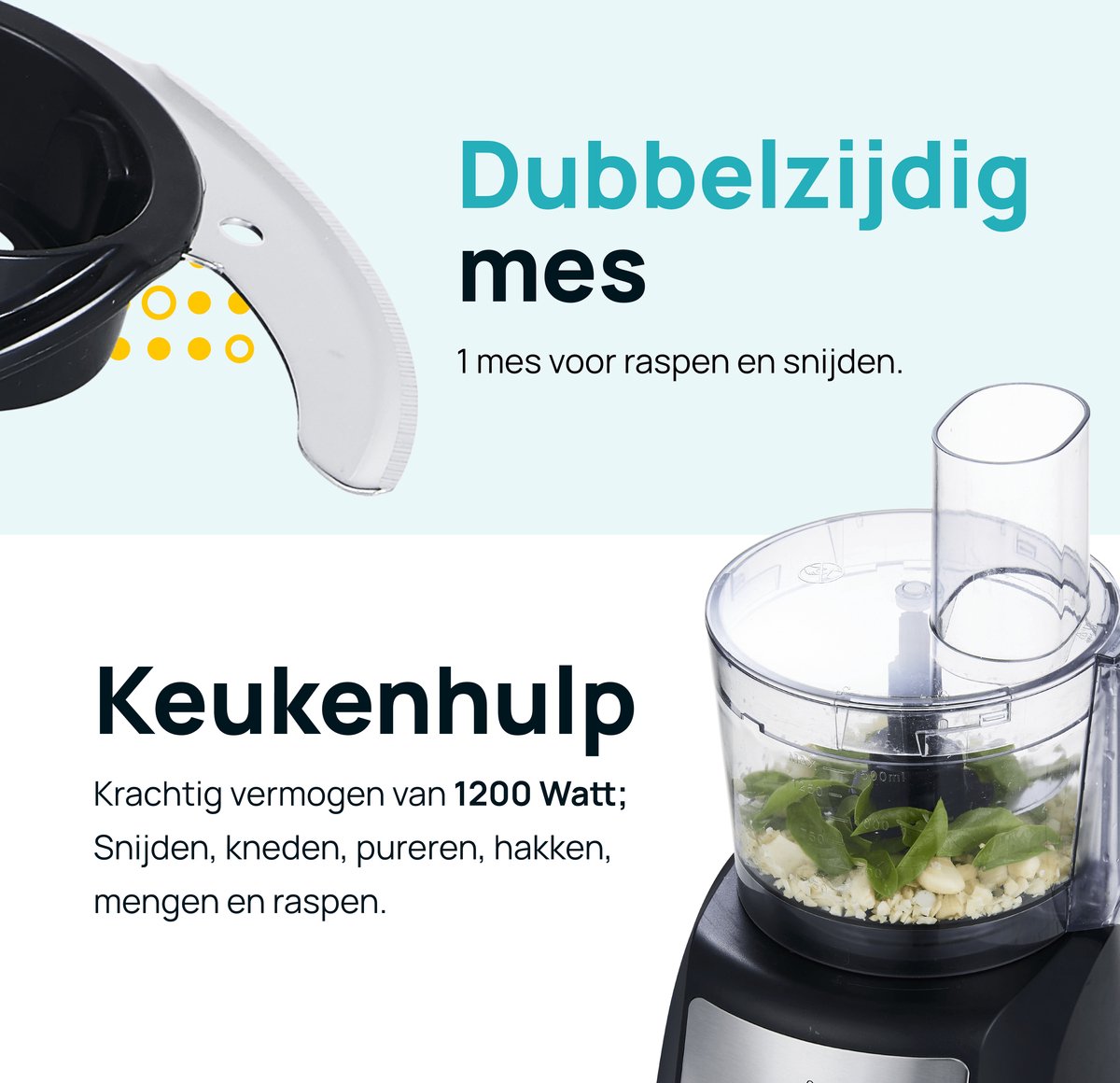 1200 Watt vermogen voor vlot en gelijkmatig verwerken