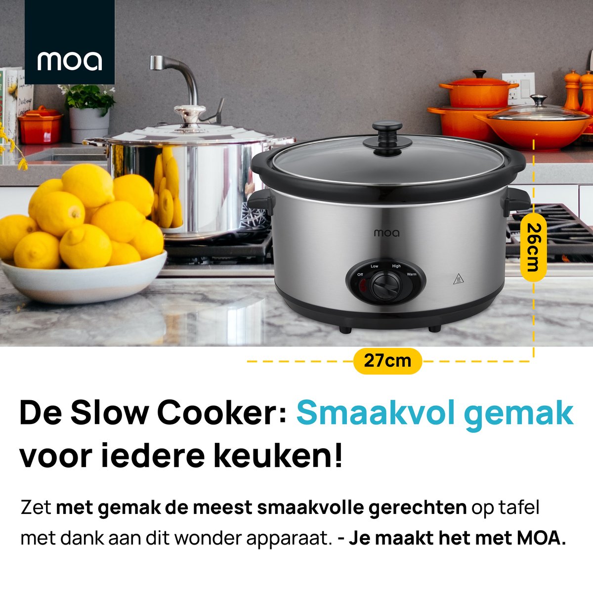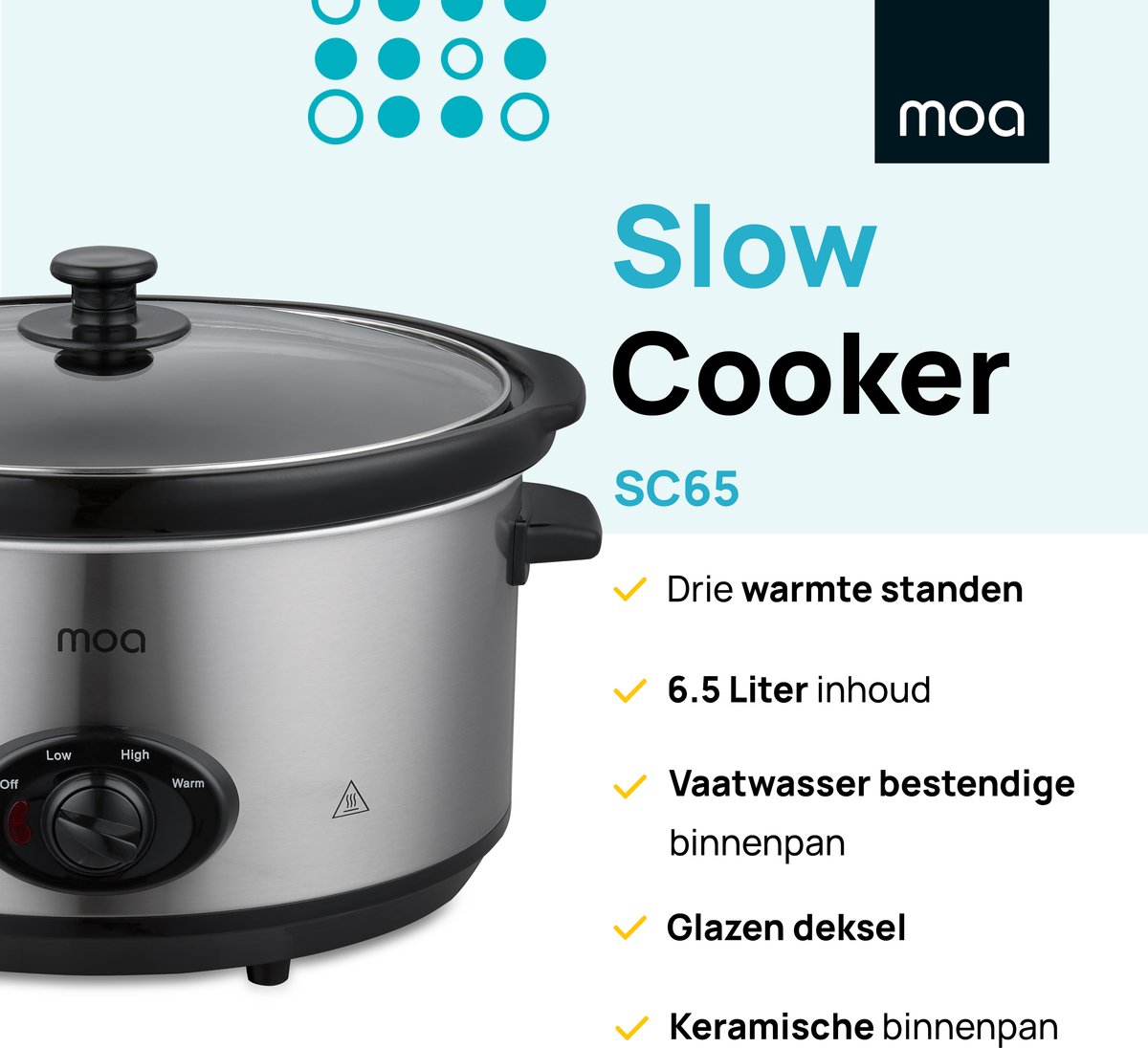 De MOA slowcooker SC65 helpt Nederlandse gezinnen zonder gedoe smaakvol te koken terwijl je tijd overhoudt. Dankzij een inhoud van 6,5 liter maak je in één keer maaltijden voor het hele huishouden.
