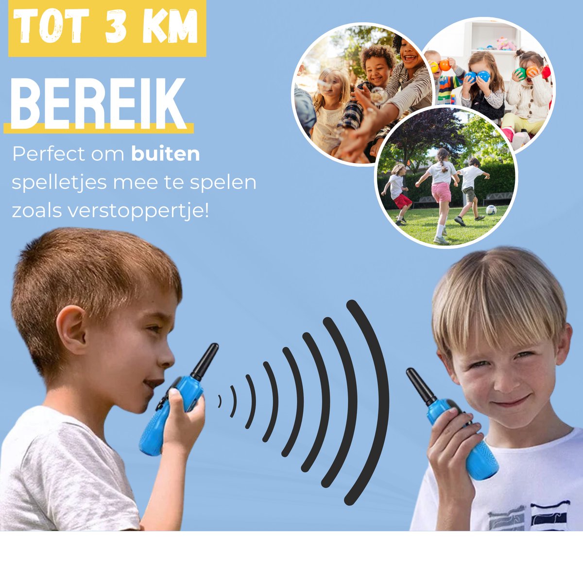 Overzicht:Deze walkietalkies zijn een robuuste, kindvriendelijke communicatieset voor Nederlandse gezinnen, ideaal voor veilig contact tijdens buitenspelen en fietstochten. Ze bieden een bereik tot 3 km, zodat kinderen en ouders eenvoudig verbonden blijven.