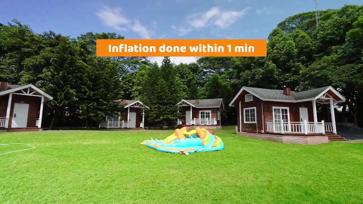 Het toestel combineert een springgedeelte met waterglijbaan, trampoline-achtige zones, een basketbalring, waterpistolen, klimwand en werpspelletjes. Dit zorgt voor veel afwisseling en langere spelbetrokkenheid. In de praktijk betekent dit dat kinderen niet snel verveeld raken: ene minuut springen ze, de volgende minuut glijden of spelletjes met de ringwerpen spelen. Voor verjaardagsfeestjes of speeldates is deze variatie een groot voordeel.