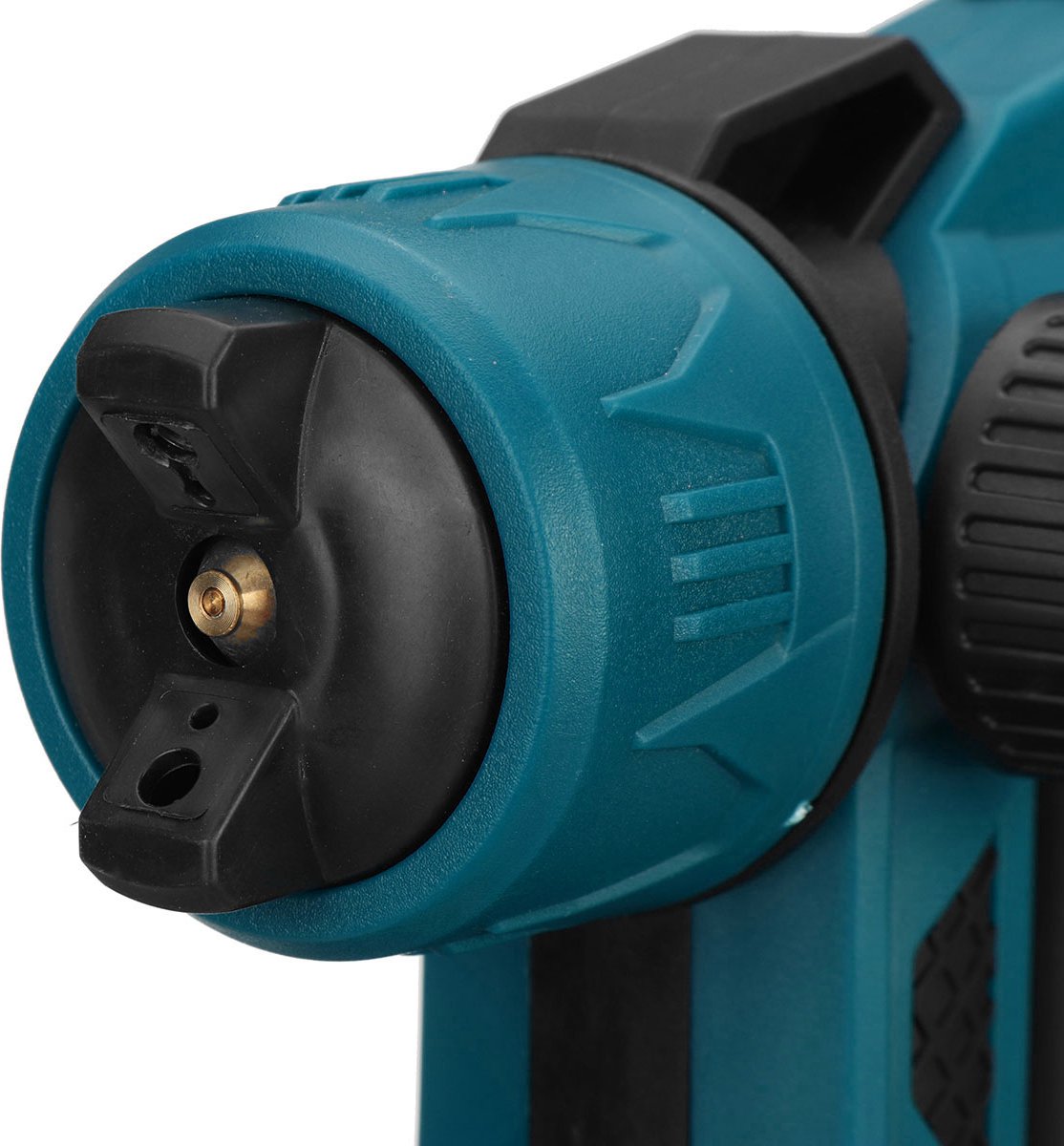 De bediening is eenvoudig gehouden: je hebt keuze uit drie spuitpatronen (horizontaal, verticaal en rond) en er is een instelbare regeling voor de verfuitvoer via een knop op de sproeier. Samen met de set sproeiers van 1,0 / 1,8 / 2,5 mm kun je het debiet en de druppelgrootte afstemmen op je project. Dat is cruciaal om te voorkomen dat het gaat druipen of dat je te droog spuit. De fabrikant vermeldt bovendien een motorsnelheid van 25.000 tpm, wat in de praktijk neerkomt op een fijne verneveling wanneer de verf de juiste viscositeit heeft.