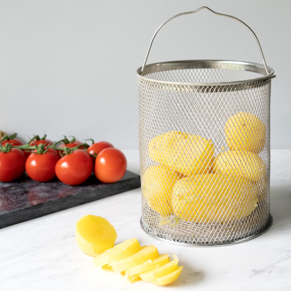 - Til het inzetmandje eenvoudig uit de pan dankzij twee stevige handvatten.