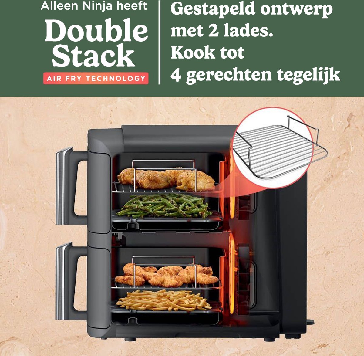 Klaar om compacter, sneller en flexibeler te koken? Bekijk actuele prijzen en aanbiedingen en bepaal of de Ninja Double Stack XXL past bij jouw keuken en kookstijl.