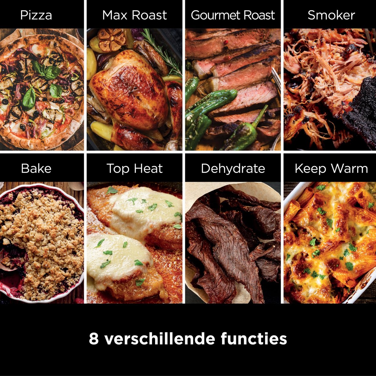 | Kookprogramma’s | 8-in-1: pizza, maximaal roosteren, gourmet roosteren, roken, bakken, bovenwarmte, drogen, warmhouden |