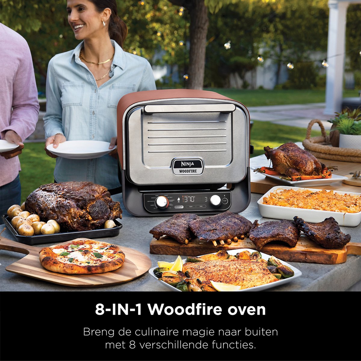 De Ninja Woodfire Outdoor Oven is een 8-in-1 buitenoven voor Nederlanders die veelzijdig, smaakvol willen koken in de tuin. Het brede temperatuurbereik van 105–370°C en het gebruik van slechts een halve kop houtpellets maken grillen, bakken en roken eenvoudig en consistent.