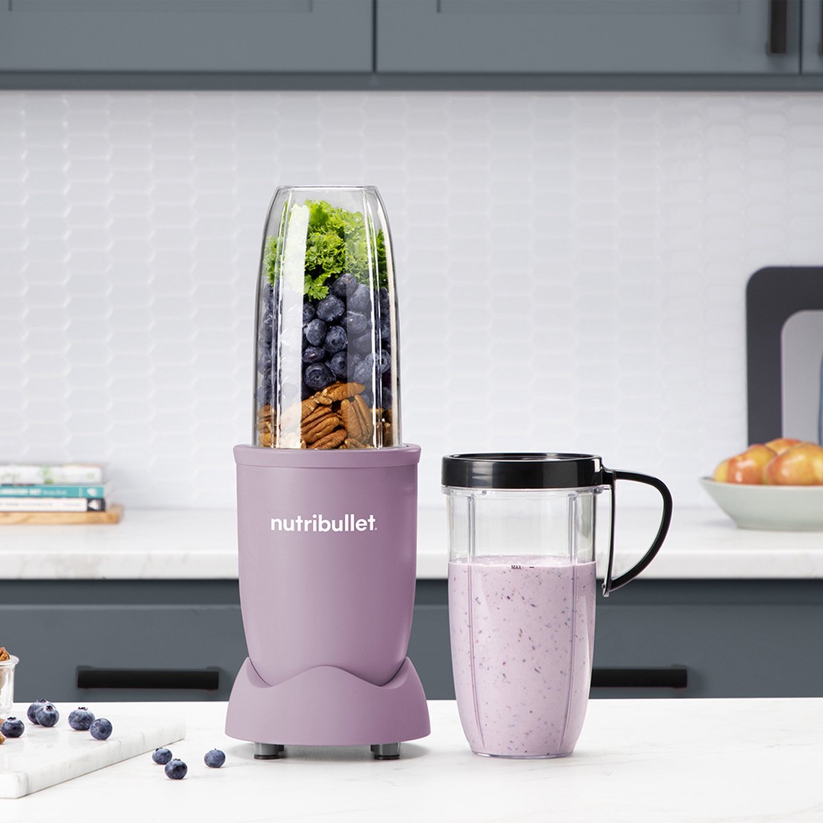 Stel Notificatie voor Product in: Nutribullet Exclusive Blender - 900 Watt - Smoothie Maker -700ml Drinkbeker - BPS- en BPS-vrij - To-Go deksel - Incl. Accessoires - Lavendel Paars - Incl. Digitaal Receptenboek - €83,99