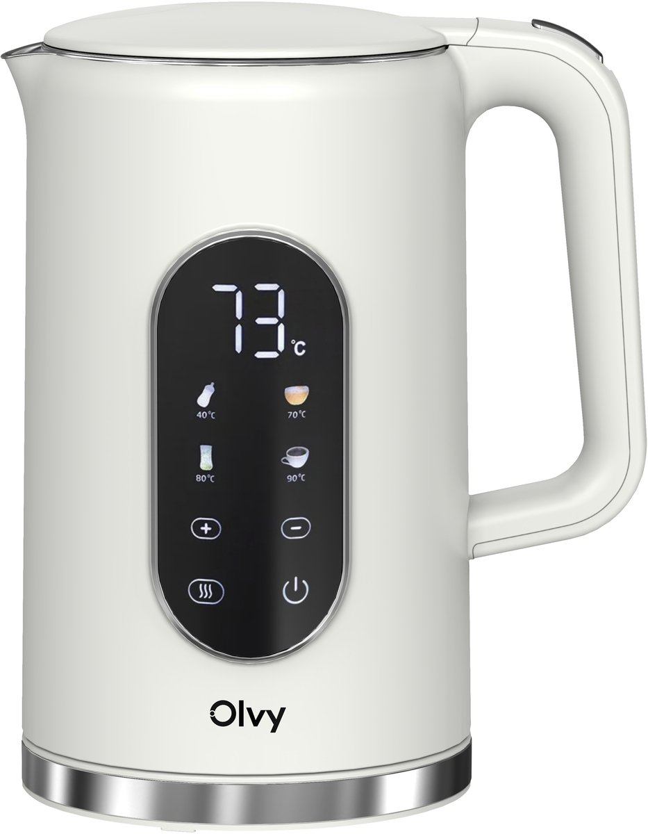 De Olvy Waterkoker is een waterkoker met temperatuurregeling die in een paar minuten perfect warm water levert voor thee, koffie of babyvoeding. Met een vermogen van 2200 W, een instelbaar temperatuurbereik tot 100°C en vier voorgeprogrammeerde standen (40°C, 70°C, 80°C en 90°C) biedt hij controle en gemak. De dubbele isolatie, het hittebestendige handvat en de koelblijvende buitenkant vergroten de veiligheid in dagelijks gebruik.