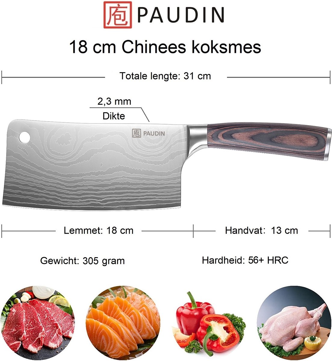 Het PAUDIN N11 Chinees koksmes levert krachtige, precieze sneden voor Nederlandse thuiskoks en chefs. Met een 18 cm lemmet is het ideaal voor dagelijks snij-, hak- en filetwerk met uitstekende controle.